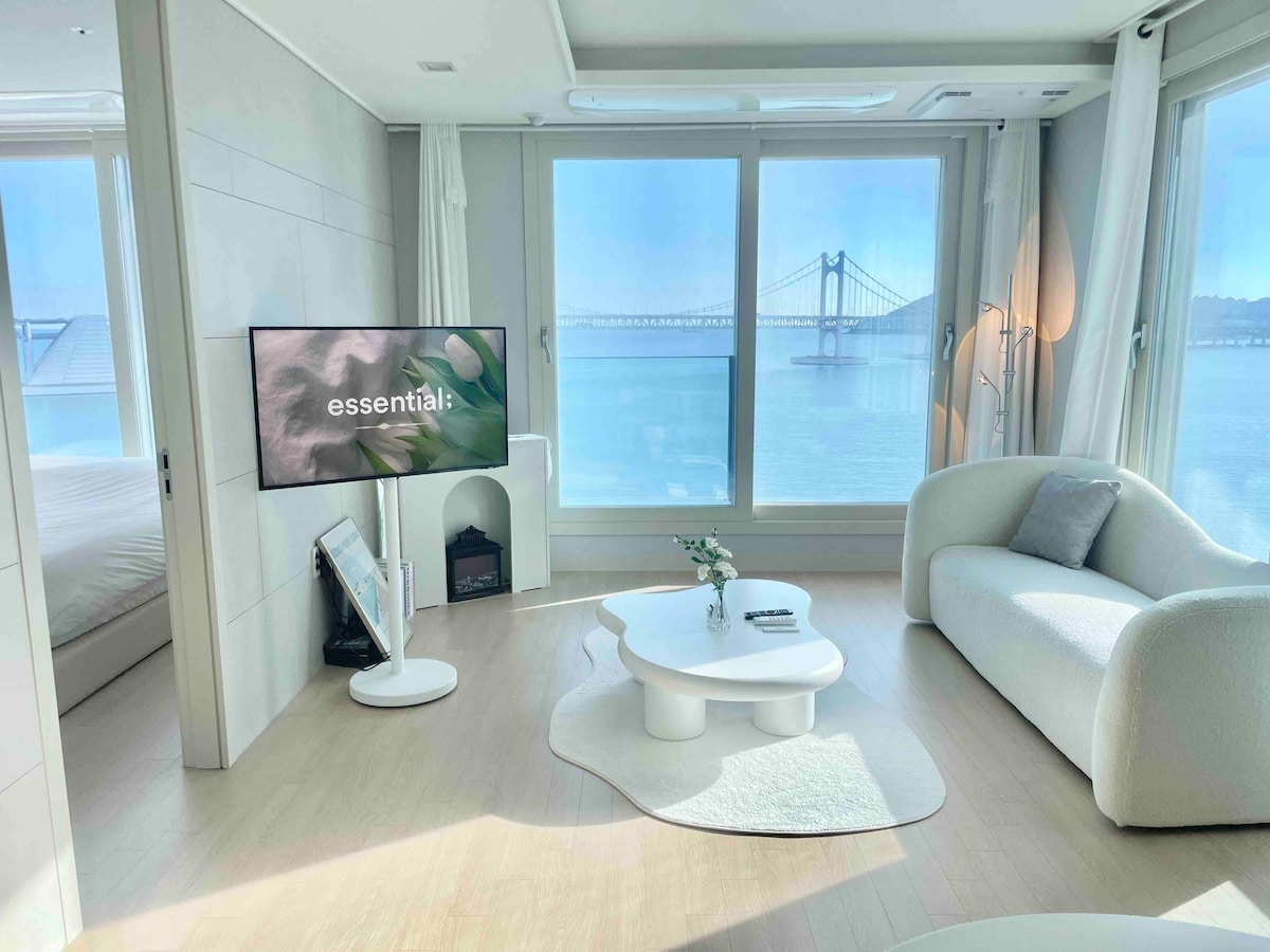 ❤️최근 방 확장 공사를 하여 침실 2개, 거실 1개의 구조로 퀸 침대 1개, 더블 침대 2개로 여유있게 주무실수 있어요:) 안리빌라(Anri villa)를 찾아주셔서 감사합니다. 🎇초근접 광안대교를 볼 수 있는 환상적인 브릿지 뷰(full ocean view) 💕거실과 침실 모두에서 볼 수 있는 힐링 풀오션뷰와 광안대교뷰 "인생샷을 남겨보세요"💖 신축 20평형대 프리미엄급 숙소로👍 매일 침구류 세탁과 살균소독 및 청소, 청결을 최우선으로 합니다.😉🎇 🍃숙소 건물내 지하1~3층 무료 주차장(자주식) 🍃스마트TV로 넷플릭스 유튜브 등을 즐겨보세요. 🍃바로 옆 밀락더마켓, 해운대 차로 10분 거리 🍃1층 카페, 와인샵 등 편의시설이 있어요. 🍃🍃 안티스트레스 티(유기농)와 핸드드립 커피, 인센스가 준비되어 있습니다. 마음이 복잡했다면 따뜻한 차와 향과 함께 조금은 해소되길 바라요.