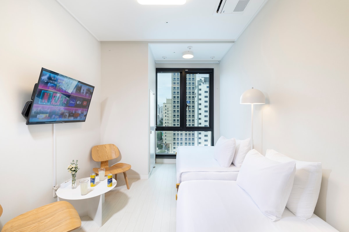 [EP]光安里正面景观旺季特价最多6人入住标准双人床2张床垫2张免费停车Mister Mansion连住折扣