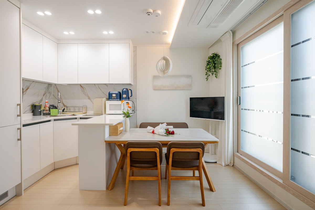 NEW HOME 弘益大学站3号出口正前方(步行20秒),整套房源(3间客房、客厅、厨房)