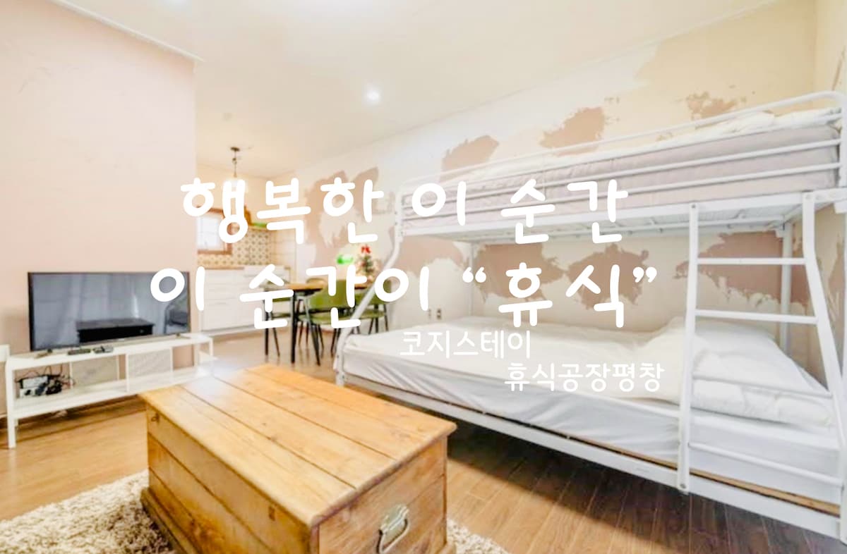 ๊ฐ์๋์ ๊นจ๋ํ ์์ฐ ์์์ ์ผ๊ณผ ์น์ ์ ์๋์ง๊ฐ ๊ฐ๋ํ ํก์ฑ1ํธ ํ์ฅ์คํ ์ด, ์จ์๊ฐ(็ฉฉ้คๅฎถ)์ ๋๋ค. ์ ํ์ฅ์ ํธ์์ฑ์ ๊ฐ์ถฐ ๋ฆฌ๋ชจ๋ธ๋งํ์ฌ 4~7๋ช ์ ๋์ ๊ฐ์กฑ, ์น๊ตฌ๋ค์ด ์๋ฝํ๊ฒ ์ด ์ ์๋ ๊ณต๊ฐ์ ๋๋ค. ์์นจ๋ง๋ค ์จ๊ฐ ์์๋ฆฌ์ ์ ์ ๊นจ๋ฉฐ, ๊ฐ์ธ ๋ ์ ์์์ง๋ ๋ณ๋น์ ๊ฐ์ํ ์ ์์ต๋๋ค. ์ฒญ์ ์์ฐ์์๋ง ๋ณผ ์ ์๋ค๋ ๋ฐ๋ง๋ถ์ด์ ๋ ธ๋ ์ข ๋ฌ์, ์๋ฌ์ด ํจ๊ป ์ฌ๋ ๊ณณ์ ๋๋ค. ์ง ์ฃผ์ธ์ด ์์ ๋ฐ๋ก ์์ ๊ฑฐ์ฃผํ์ฌ ๊ฒ์คํธ์ ์๊ตฌ์ฌํญ์ ์ฆ๊ฐ์ ์ผ๋ก ๋์ํด ๋๋ฆฝ๋๋ค. ํนํ ๊ณ ๊ธ์ปคํผ์๋์ ์์คํ๋ ์๋จธ์ , ๊ฐ์ข ์๋ ๋ฅ๋ฅผ ๋ฌด์์ผ๋ก ์ ๊ณตํด๋๋ฆฌ๋ฉฐ, ์๊ธฐ์ธ์ฒ๊ธฐ ๋ฐ ๋์ฅ๊ณ , ์ ์๊ธฐ, ๋นํ๋ก์ ํฐ, ์ธํ๊ธฐ ๋ฑ ์๋น๋์ด ์์ต๋๋ค. ํธ๋ฐฑ์์กฐ, ์ฌ์ฐ๋(์ฌ๋ฆ์ฒ ์ ์ธ)๋ฅผ ์ฆ๊ธธ ์ ์์ผ๋ฉฐ ๋ฐ๋ฒ ํ๋ฐํฌ, 100์ฌ ํ์ ๋์ ์๋๋ฐญ๊ณผ ๊ทธ๋ค, ํฌํธ, ์ท๋ ์ค๋น๋์ด ์์ต๋๋ค. ์ฌ๋ฆ์๋ ์์ ๋ฐ๋ก ์ ์ฒญ์ ๊ฐ์ธ์์ ๋ฌผ๋์ด๋ฅผ ํ ์ ์์ต๋๋ค.(์ฌ๊ฑด์ด ๋ฌ๋ผ์ง ์ ์์ผ๋ ๋ฏธ๋ฆฌ ๋ฌธ์๋ฐ๋๋๋ค. ๋ณ๋์ ๊ฐ์ด์์์ฅ์ ์ด์ํ์ง ์์ต๋๋ค)