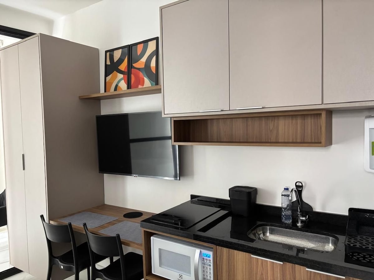 Studio moderno e equipado, com 25m², possui ambiente integrado com a cozinha e 1 banheiro, com vista e fechamento de vidro. Este apartamento tem todo o conforto que você precisa, para ter uma hospedagem agradável em São Paulo. O prédio conta com Quadra de Beach tênis, coworking e academia, além de máquinas de lavar roupa (com custo adicional), em área comum do prédio. Venha se hospedar no coração do Jardins, com bons restaurantes e lojas, a poucos passos da rua Oscar Freire!