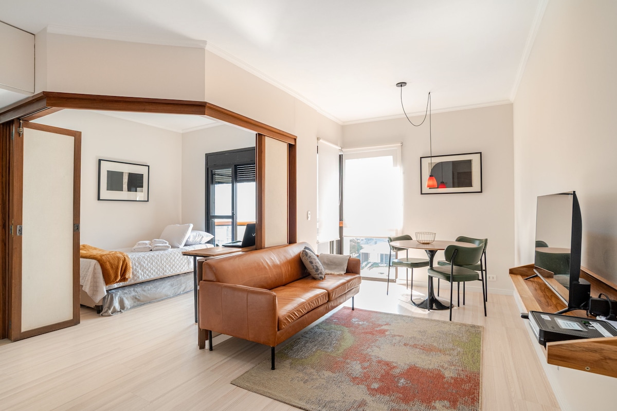An incredible studio ready to welcome you in Paraíso, São Paulo. Feel at home with a queen-size bed, Smart TV and air conditioning for your total comfort. The compact and functional kitchen allows you to prepare your meals with ease. The condominium offers complete leisure facilities with a gym and swimming pool for your moments of relaxation. The location, 2 km from the subway, connects you to the entire city. Your next adventure starts here! Guarantee your reservation!