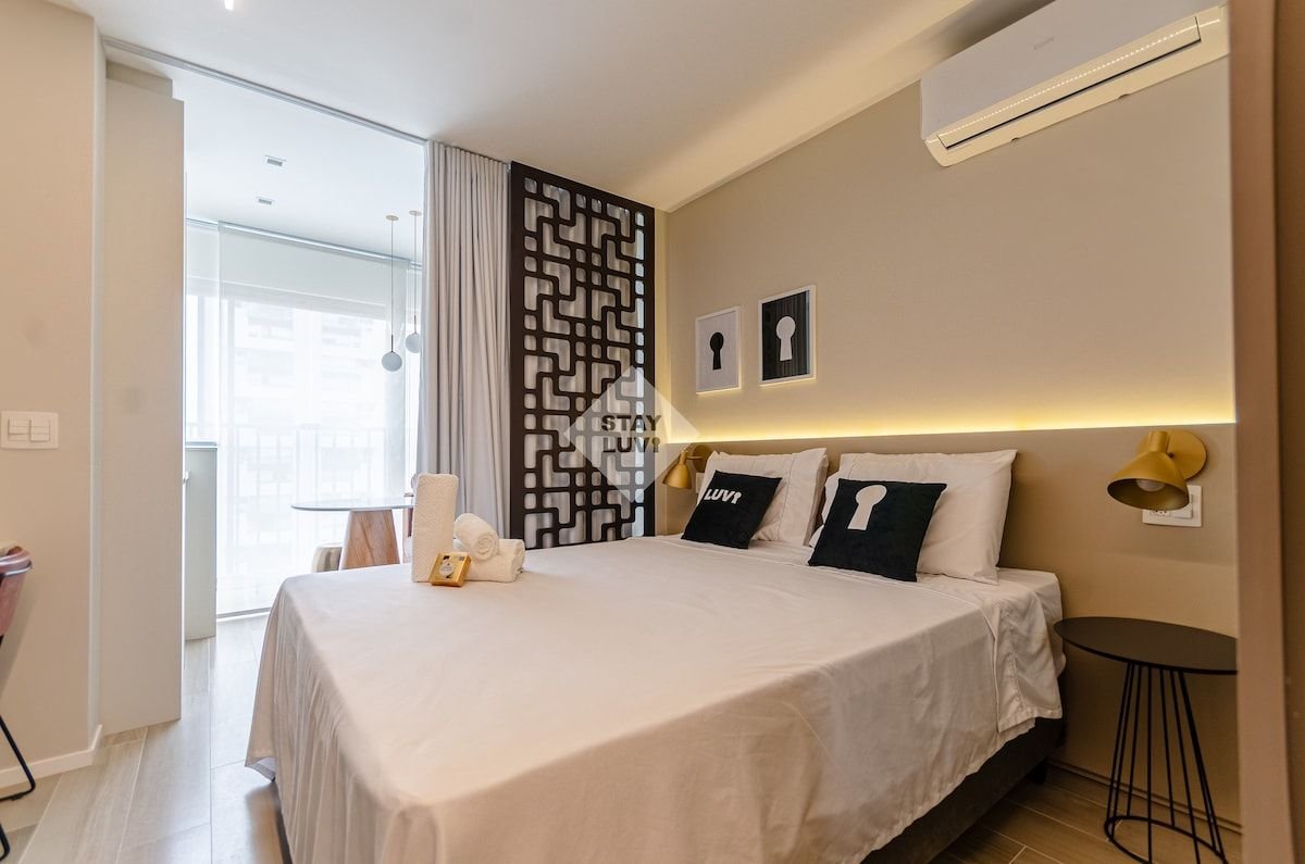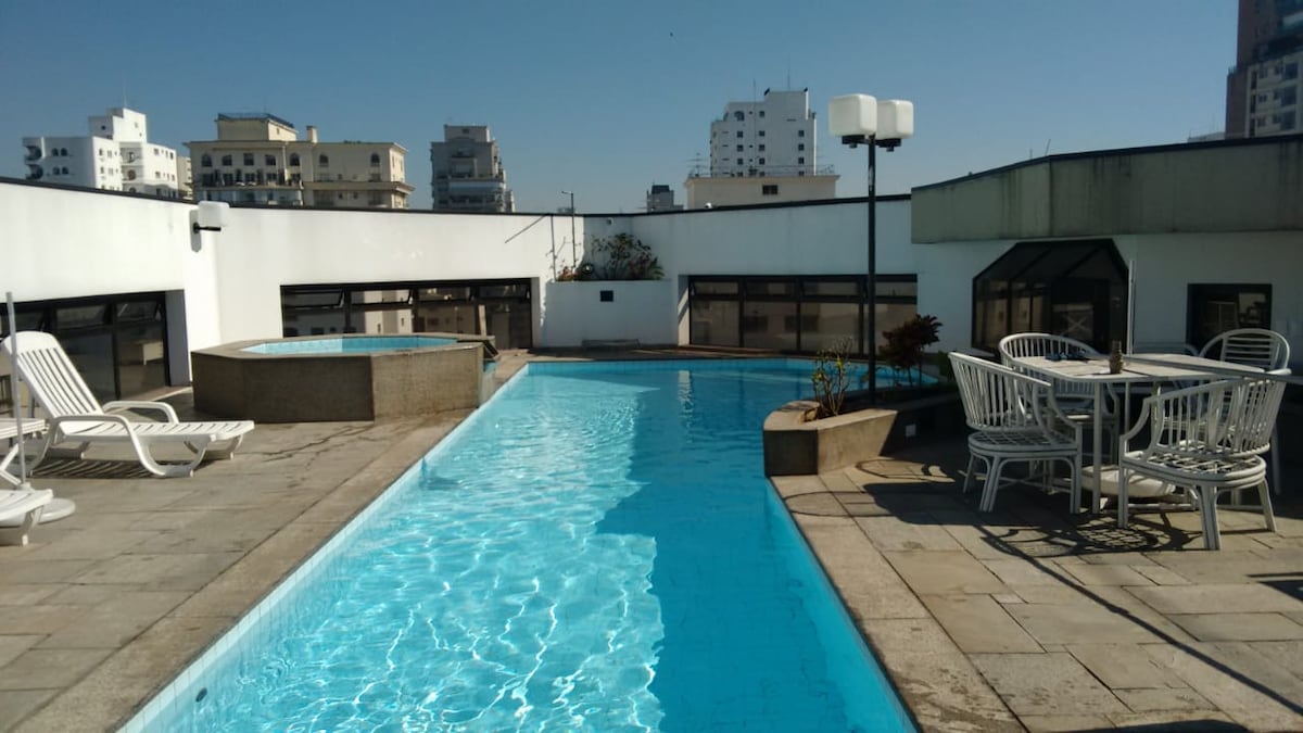 Flat moderno nos Jardins, perfeito para lazer ou trabalho. Oferece Wi-Fi de 1GB, piscina, academia e vaga de garagem inclusa. O espaço é aconchegante, com cama confortável, ar-condicionado, Smart TV e cozinha equipada. Localização privilegiada, próximo à Av. Paulista, Parque Ibirapuera e os melhores restaurantes da cidade. Recepção 24h e serviços de limpeza disponíveis para maior comodidade. Reserve agora e aproveite o melhor de São Paulo!