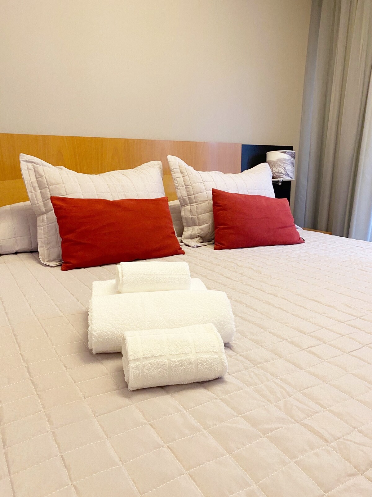 - Flat dentro de Apart Hotel/Residence com uma vaga - Limpeza diária (serviço não inclui lavagem de louça) - Wi-Fi gratuito - TV a cabo - Ar condicionado - 1 Cama de casal Queen com box - Roupas de cama e banho inclusas - troca semanal para permanências superiores a 7 dias (contribuindo com o meio-ambiente, não fazemos trocas diárias) - Copa equipada com frigobar, micro-ondas, cafeteira e utensílios (pratos, copos, talheres) - Secador de cabelos - Ferro de passar portátil - Papel higiênico