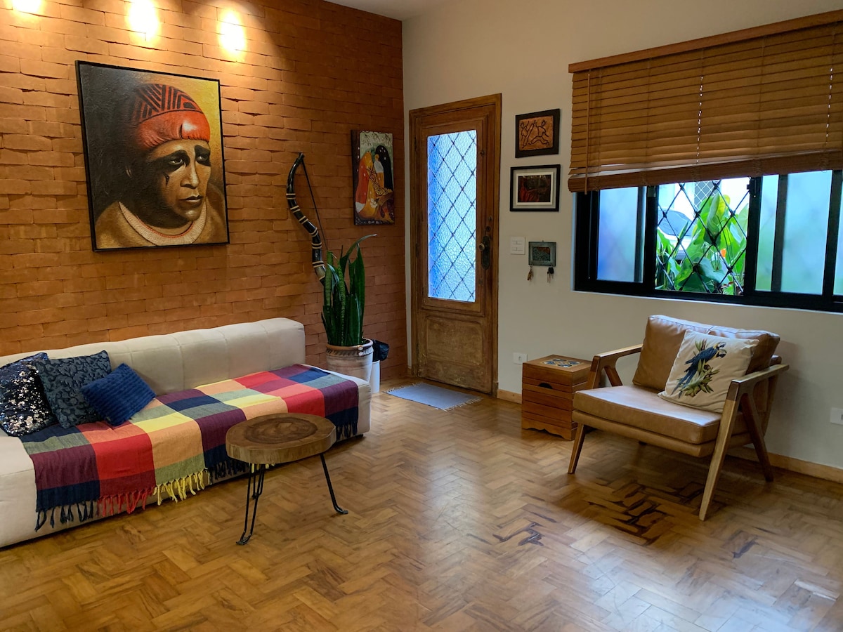 Relaxe neste espaço calmo e cheio de estilo, ligado às artes e à literatura. Estamos perto de duas linhas do metrô, ônibus e de regiões centrais, como a Av. Paulista. Nossa casa fica em um bairro arborizado e tranquilo, com mercados, restaurantes, padarias, praças, parque e toda uma infraestrutura que pode ser acessada caminhando. Atenção: no quarto 1 temos uma cama queen; e no quarto 2 tempos uma cama de solteiro e um futon no qual é possível dormir uma pessoa tranquilamente.