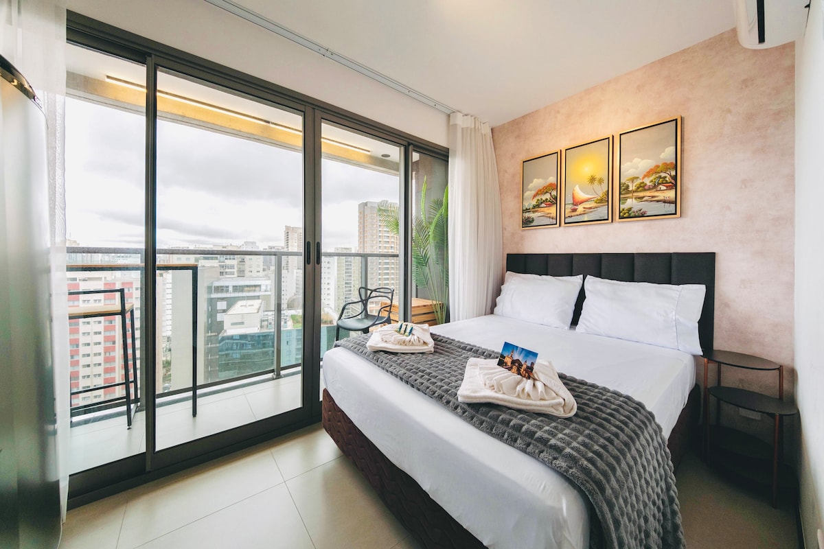 Excelente Localização Região Nobre e Descolada Situado a poucos metros da renomada R. Oscar Freire e do sofisticado CJ Shops, cercado pelo que há de melhor na cidade: os mais aclamados restaurantes, bares, farmácias, salões de beleza e parques . Desfrute de uma vista livre, com um toque de verde que traz serenidade ao seu dia. A rua é reconhecida por ser segura e tranquila, garantindo sua comodidade e paz. *WI-FI de alta velocidade e acesso a NETFLIX. •Importante: Não somos um hotel