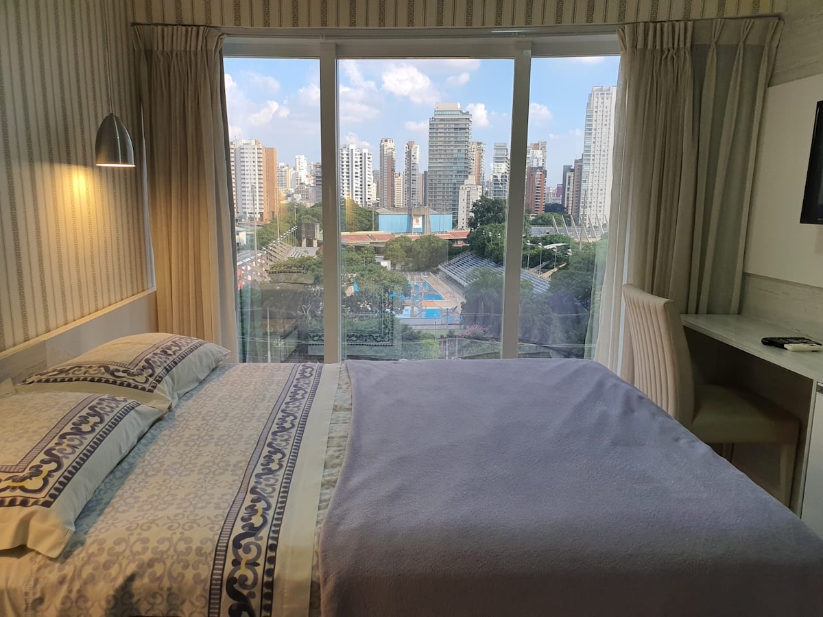 Desfrute desse lugar único e tranquilo ao lado do Ginásio e Parque do Ibirapuera, próximo de restaurantes, bancos, farmácia e mercados. Ótimo para trabalhar ou para relaxar! Wi-Fi EXCLUSIVO do apartamento.