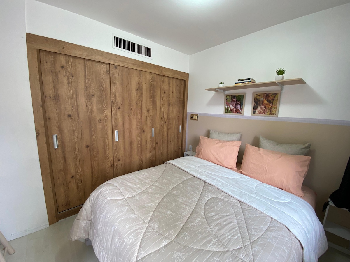 Apartamento com localização privilegiada, em rua tranquila e arborizada em edifício exclusivo, com poucas unidades, com piscina e uma vaga demarcada para estacionamento. Apartamento de estilo atual, com duas suítes, home office, sala de estar em dois ambientes com TV e sala de jantar para oito pessoas, cozinha completa, com varanda, ar condicionado quente e frio em todos os ambientes, com móveis de design, vista ampla, Wi-Fi Ultra rápida, TV a Cabo com seleção completa de canais e streaming.