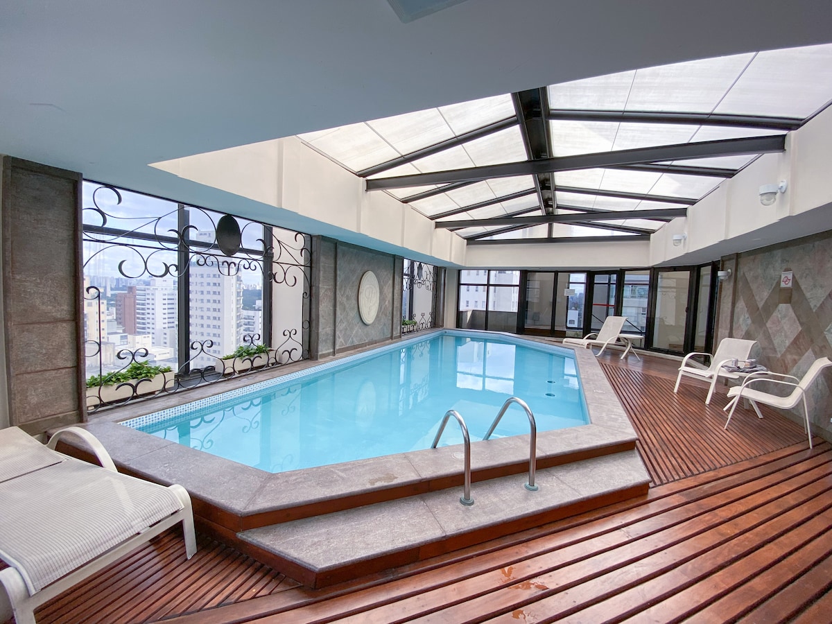Studio You Faria Lima c/ piscina e vaga veículo.