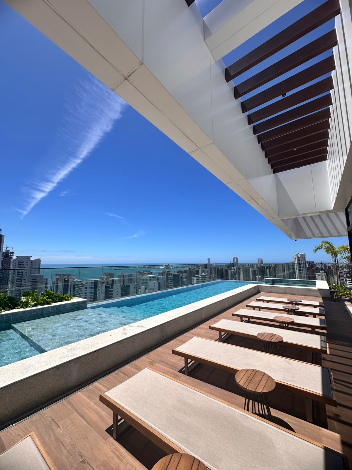 Studio sofisticado, acolhedor e bem equipado, perfeito para curtas ou longas estadias, a trabalho ou lazer. A apenas 500 m da Beira-Mar, no Meireles, você estará perto de restaurantes, lojas, serviços e pontos turísticos. Acomoda até 3 pessoas com conforto, tem varanda com vista para o mar e fica no 13º andar do Beach Class Meireles, com infraestrutura incrível: piscina, academia no rooftop e espaço para coworking. Wi-Fi rápido, ar-condicionado e estacionamento completam a experiência.