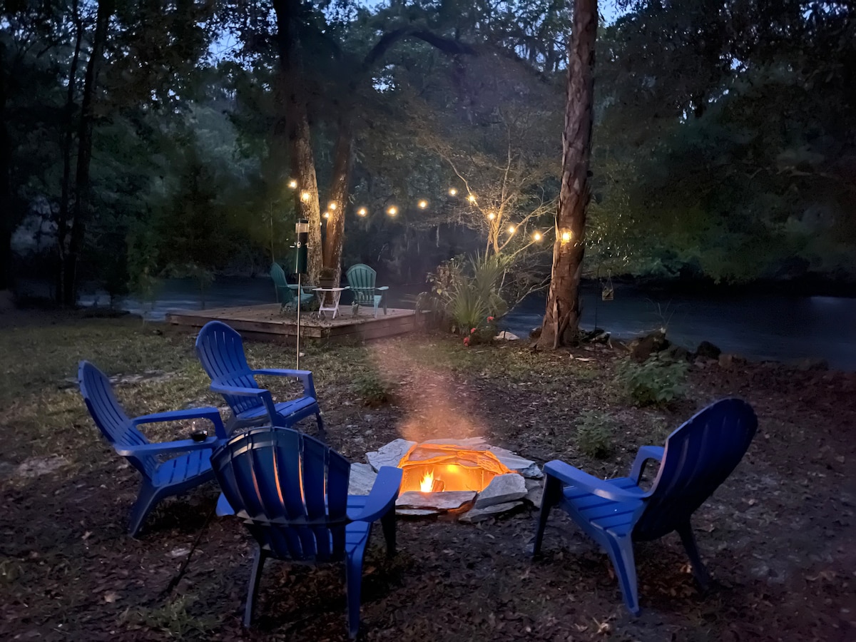 Tiny cottage in forest setting . 10 min to itchetucknee and 5 min to Oleno park, 20 min to Ginnie springs Efficiency kitchen w toaster oven, microwave, refrigerator, hot plate, blender and coffee machine utensils, bathroom w shower, queen size bed, Earthlink internet w Roku TV Firepit and grill on deck. Very private and quiet. Magical forest surrounding on 86 acres.