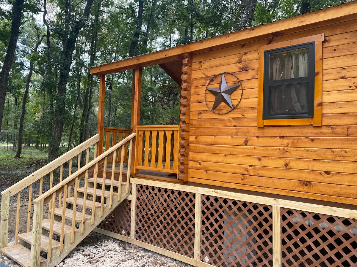 New Hideaway Western Theme Cabin Amish made real log cabin nestled among trees and wildlife (lots of deer) Minutes away from Ginnie, Ichetucknee, Poe, and Blue Springs Kayakers and Canoes love our convenience to rivers and springs Fire pit and FREE FIREWOOD onsite(enough for one fire) FREE WIFI INSIDE CABIN Large private property with lots of trees Relax on the porch or around the fire and make some awesome memories in your private log cabin This is a no pet cabin