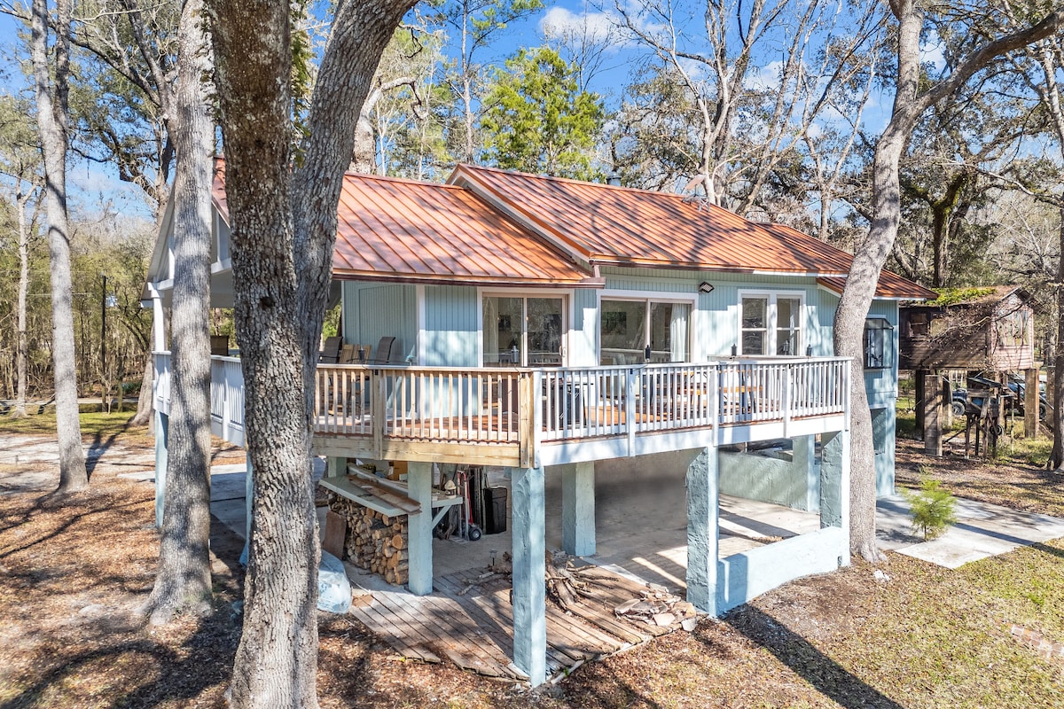 Beautiful serene 2026 remodeled home one mile from Ichetucknee State Park! Also close to Ginnie, Blue, Poe, Royal, and Little River Springs. Step outside with your coffee and enjoy the wooded neighborhood and river views/access. Large screened porch and well appointed open kitchen perfect for cooking. The house is elevated which creates a separate covered outdoor area with hammocks and a full second bathroom. Perfect cozy space for a couples retreat! Treehouse as an add on for extra guests.