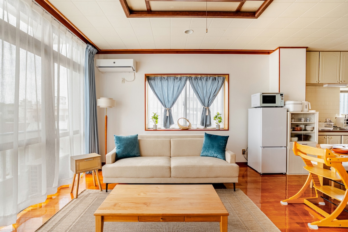 A trusted private house in central Ginowan, a 10-minute walk to Tropical Beach and Ginowan Seaside Park. Ideal for families and quiet small groups, accommodating up to 6 guests. Cafés, local restaurants, and convenience stores are nearby, with PARCO CITY about a 10-minute drive away. The home is professionally cleaned, offers fresh linens, a fully equipped kitchen, washer/dryer, and free parking for two cars. Licensed for short-term stays. Guests appreciate the calm setting and easy check-in.