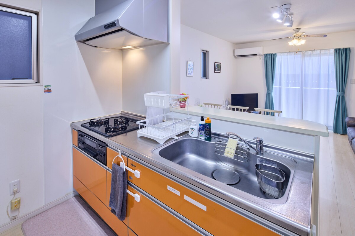 A trusted private house in central Ginowan, a 10-minute walk to Tropical Beach and Ginowan Seaside Park. Ideal for families and quiet small groups, accommodating up to 6 guests. Cafés, local restaurants, and convenience stores are nearby, with PARCO CITY about a 10-minute drive away. The home is professionally cleaned, offers fresh linens, a fully equipped kitchen, washer/dryer, and free parking for two cars. Licensed for short-term stays. Guests appreciate the calm setting and easy check-in.