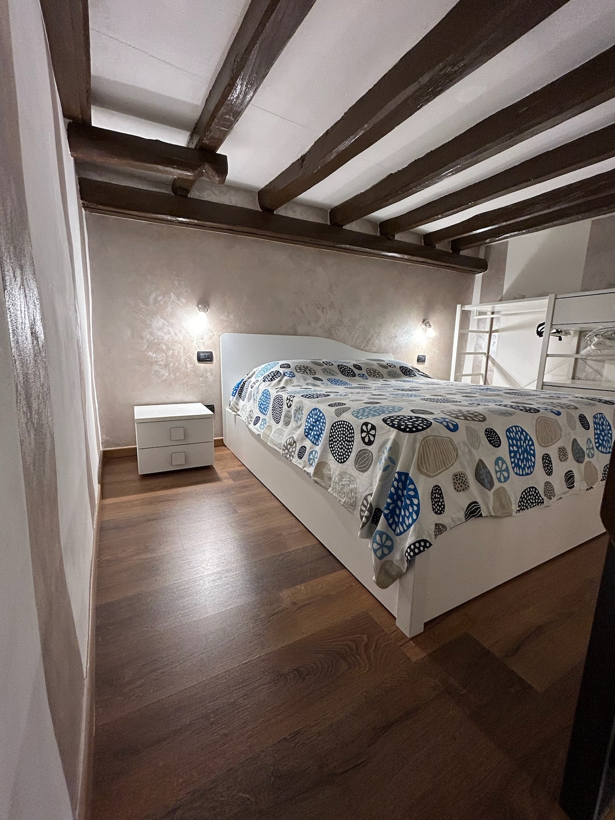 Appartamento in palazzina storica al 1° piano a 200 metri dalla Basilica di San Nicola, a 200 metri dal Porto a 400 metri dal Castello Svevo e a 400 metri dalla Cattedrale di San Sabino costituito da 2 camere con cucina attrezzata e 1 bagno, tutto ristrutturato con colonne in pietra viva, il soffitto con travi originali del 1800, luminosa con 2 balconi, TV satellitare con i canali principali mondiali.Materasso e cuscini Memory Foam. In zona silenziosa. Parcheggio pubblico costo giornaliero 12€.
