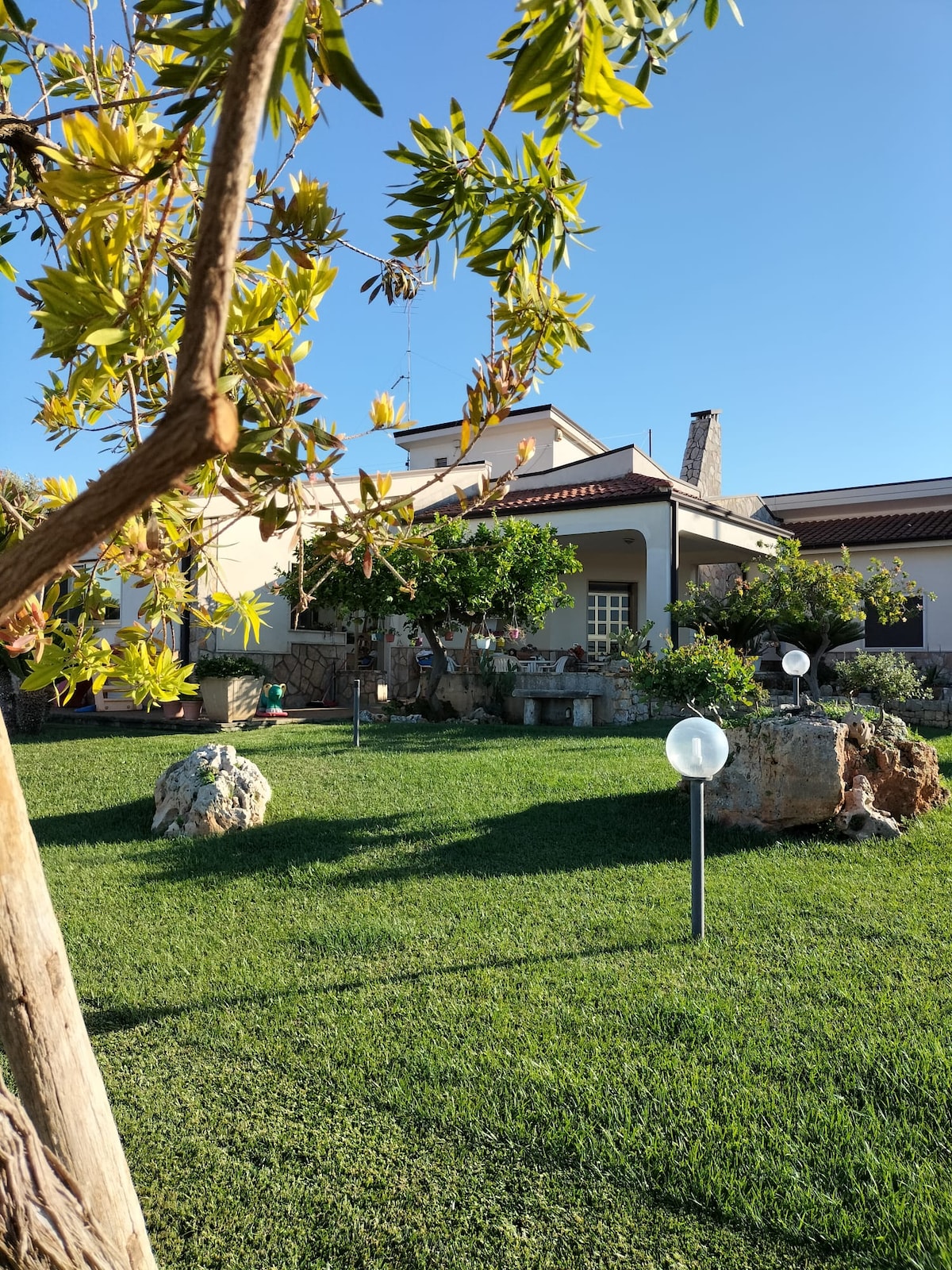 Un’ incantevole villa con piscina, immersa nel verde secolare, situata a meno di 10 minuti dall’aeroporto internazionale di Bari Karol-Wojtyla e a 1 km dalla stazione di Santo Spirito. Ottima posizione per visitare i dintorni. L’appartamento situato in villa offre due camere da letto matrimoniali, due divani letto e due bagni di cui uno idoneo a disabili. All’esterno, un suggestivo agrumeto conduce verso la zona piscina, attrezzata con lettini, ombrelloni, tavolo e sedie.