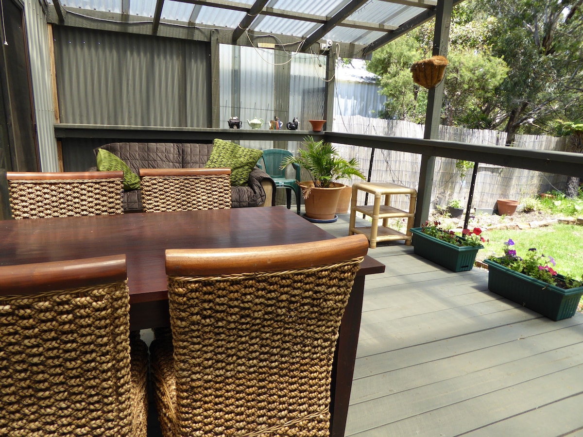 Fabulous Studio upstairs - Spacious and private with self contained kitchenette. Suitable for the corporate traveller or those seeking a beach getaway. The Inverloch main street with shopping and eateries is a 7 minute walk away. Beach & walking path only 400m from your door. Perfectly located to explore Bass Coast, Phillip Island, Wilson's Promontory South Gippsland region. Kitchen has kettle, toaster, microwave, sandwich press, air fryer, & electric frypan. Local takeaway available