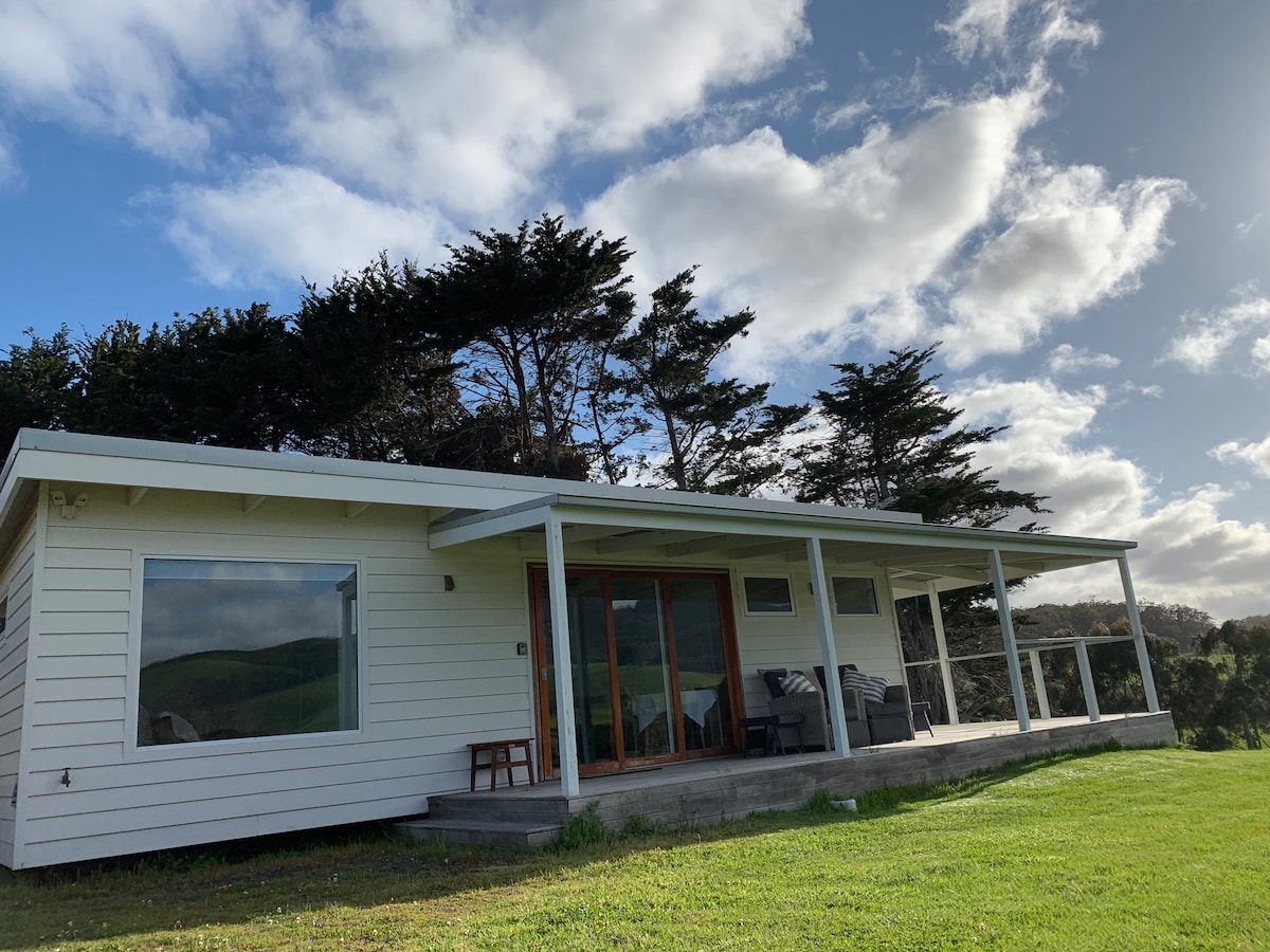 Nestled into the hill on a 100 acre farm on the Golden Creek, this 1-bedroom guesthouse with kitchenette, is ideal for couples seeking peace & seclusion, where it is all about you, the view, the wildlife and the weather. Stargaze, enjoy sunny days on the verandah or, a panoramic view of sweeping rain from the cosiness of the cabin. Port Welshpool whale watching tours are 18 minutes away. Breakfast goods are supplied by your hosts Deb and Ken