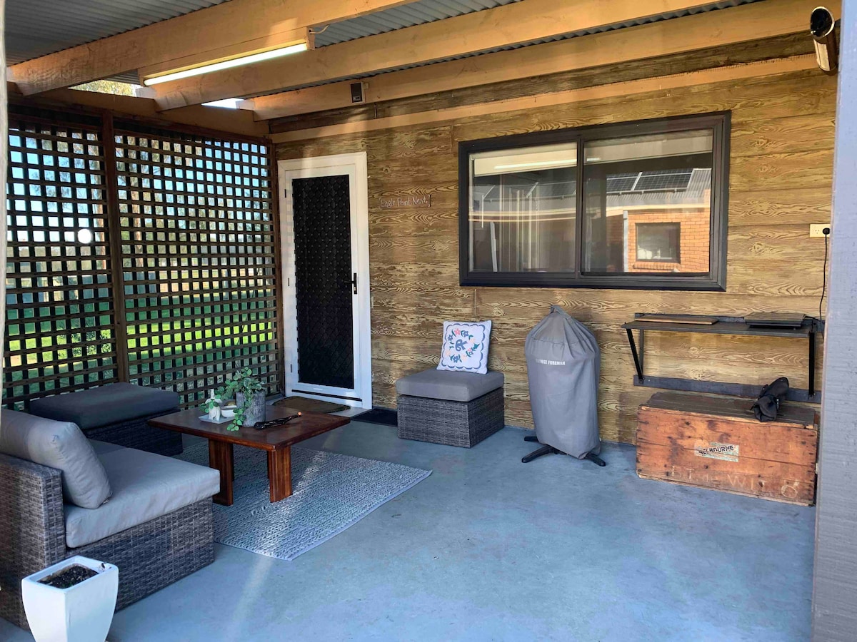 Our peaceful property is a quaint self contained unit which is separate from the main house and has bush views. Please note that we have recently changed our house rules and for safety and suitability reasons we no longer accept bookings with children. We also cannot accommodate pets. Please note that WiFi connection is poor inside the unit but ok on covered deck. No charging of EV permitted but there are two stations in town that we can ferry you too if we are available.