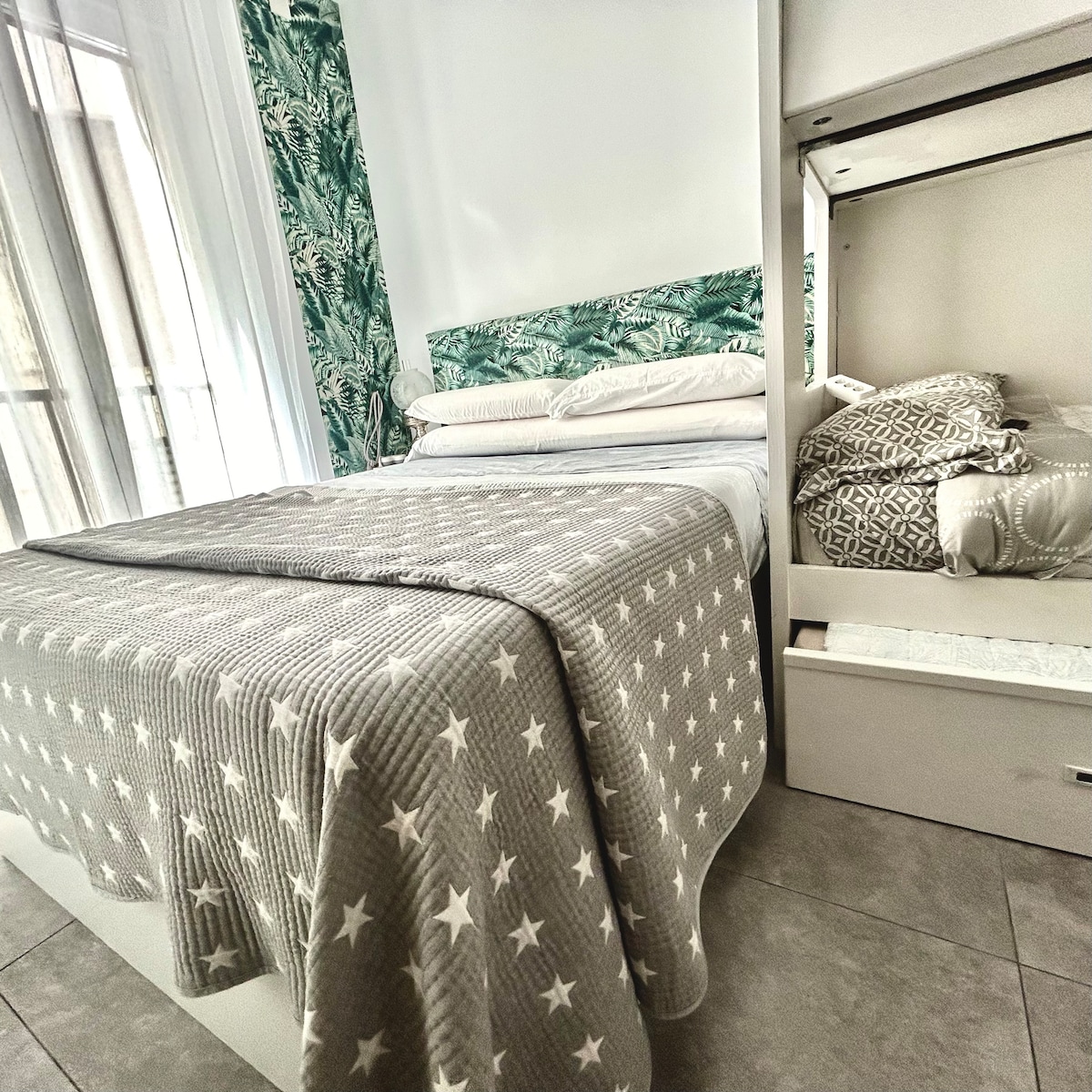 ESPACIOSO APARTAMENTO DE 90 MTS CON TERRAZA DE 45 METROS PLAZA DE GARAJE CON ACCESO DIRECTO Y GIMNASIO DE USO EXCLUSIVO EN EL MISMO EDIFICIO INCLUIDOS EN EL PRECIO. SE ADMITEN MASCOTAS CON UN SUPLEMENTO DE 30 EUROS POR ESTANCIA DORMITORIO PRINCIPAL CON CAMA 150X190 CON BAÑO INCORPORADO CON DUCHA DE HIDROMASAJE E INODORO JAPONES. SEGUNDO DORMITORIO CON CAMA 150X190 TERCER DORMITORIO CON DOS CAMAS DE 90X190 INTERCAMBIABLE POR CAMA DE 180X190 BAJO PERICION 2° BAÑO CON DUCHA.