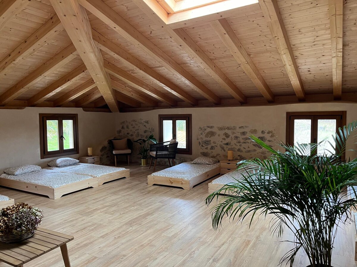 Alójate en un caserío típico vasco. El apartamento consta de dos plantas, abajo un amplio espacio de cocina comedor y zona de estar y baño, arriba una zona diáfana donde se encuentran las camas. Pueden alojarse hasta 8 personas, no se permiten fiestas y el silencio y el respeto al resto de alojados es fundamental para poder disfrutar del relax y la naturaleza En el exterior cuenta con una terraza propia, así como con un cenador cubierto y barbacoa compartido. -Parking gratis