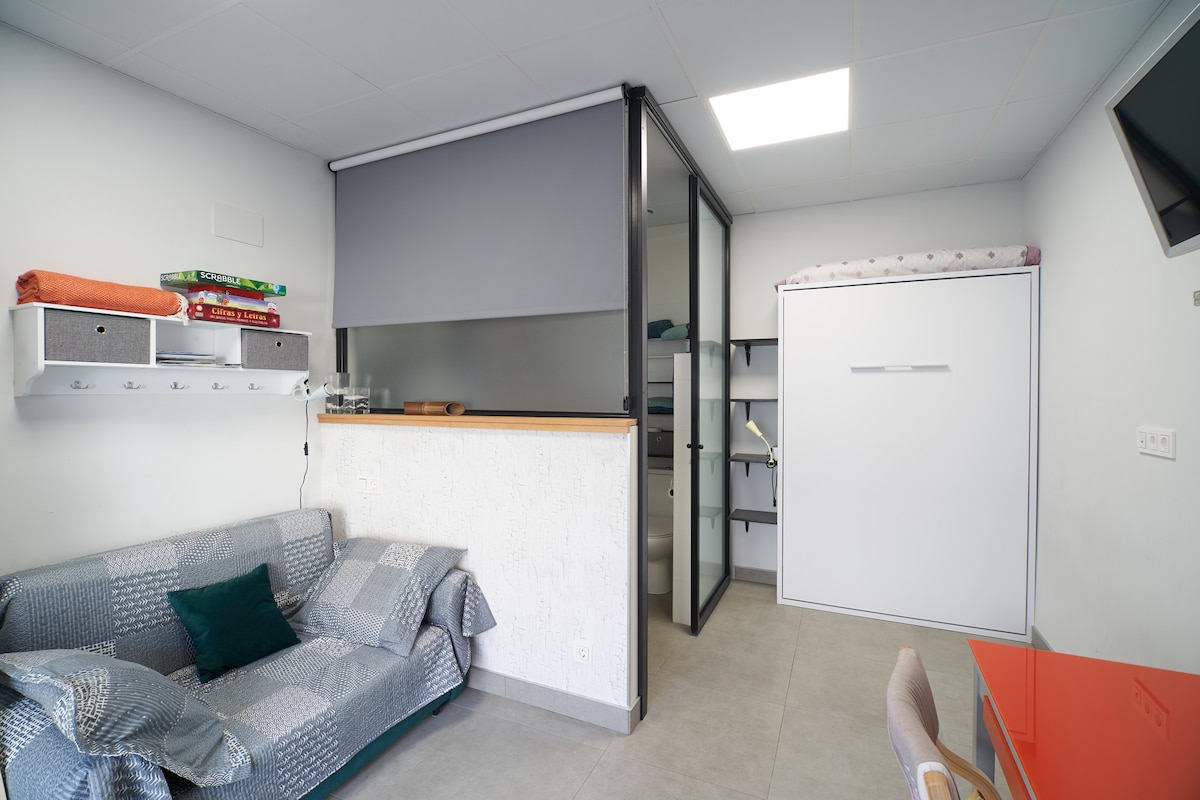 Cozy and cheerful apartment full of color and light to enjoy San Sebastian. Panoramic Sea views. Perfect dimensions. A few steps from the beach of La Concha and the city center. Divided into a spacious room with good closets, a spacious living room with a super comfortable sofa and modern paintings, an open kitchen with all the necessary appliances and top brands. Large bathroom, large shower, office space for the washing machine and the hot water heater. HIGH SPEED WIFI and BEO Sound Speakers.