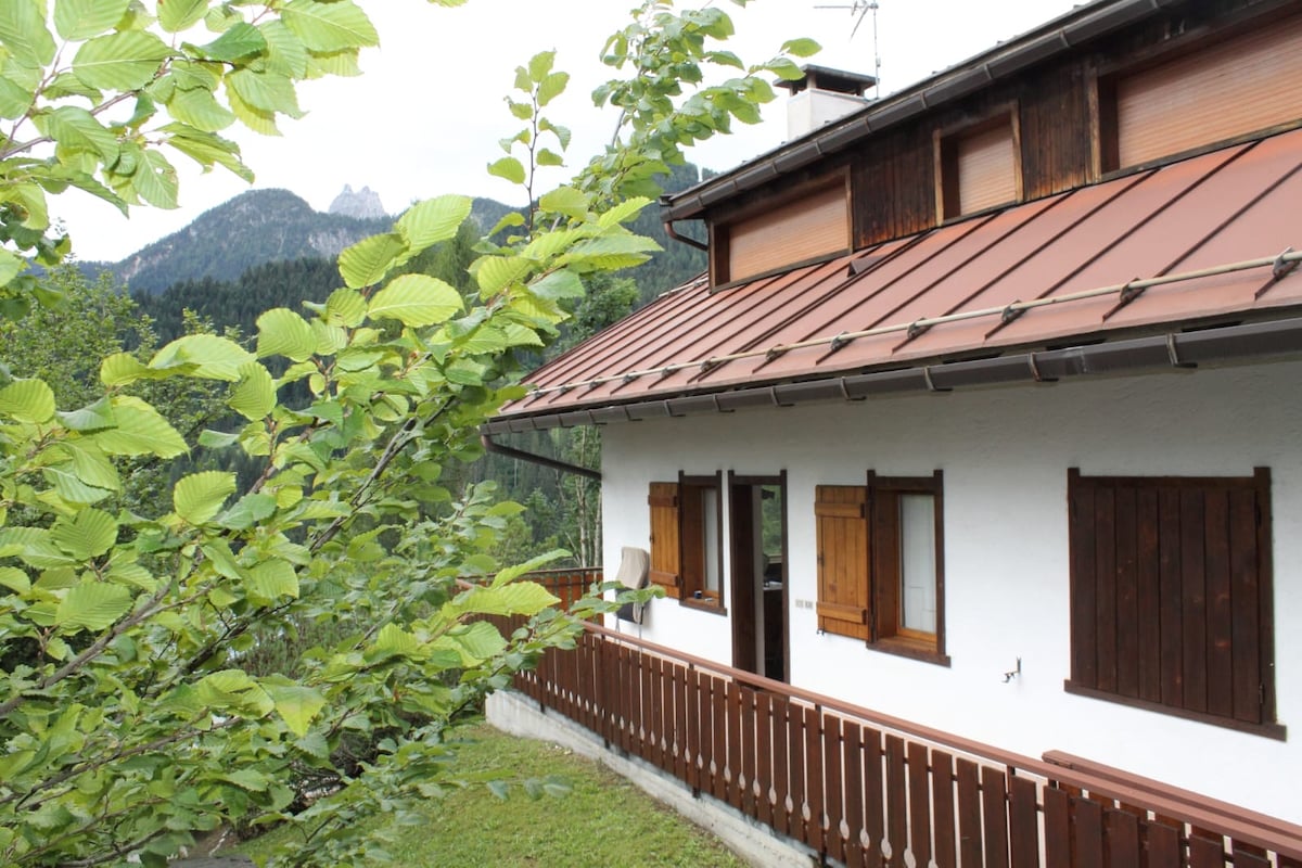 Appartamento finemente ristrutturato appena fuori paese, al limitare del bosco con impagabile vista delle Tre cime di Lavaredo. Comodo per le piste da sci e per passeggiate. L'appartamento è dotato di ogni comfort (lavapiatti, lavatrice, macchina caffè Lavazza). Ideale per famiglie con bambini, i quali possono godere del giardino.