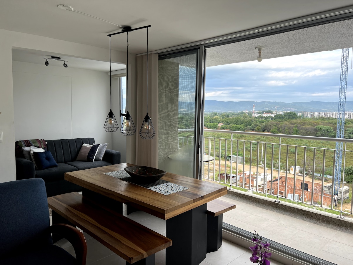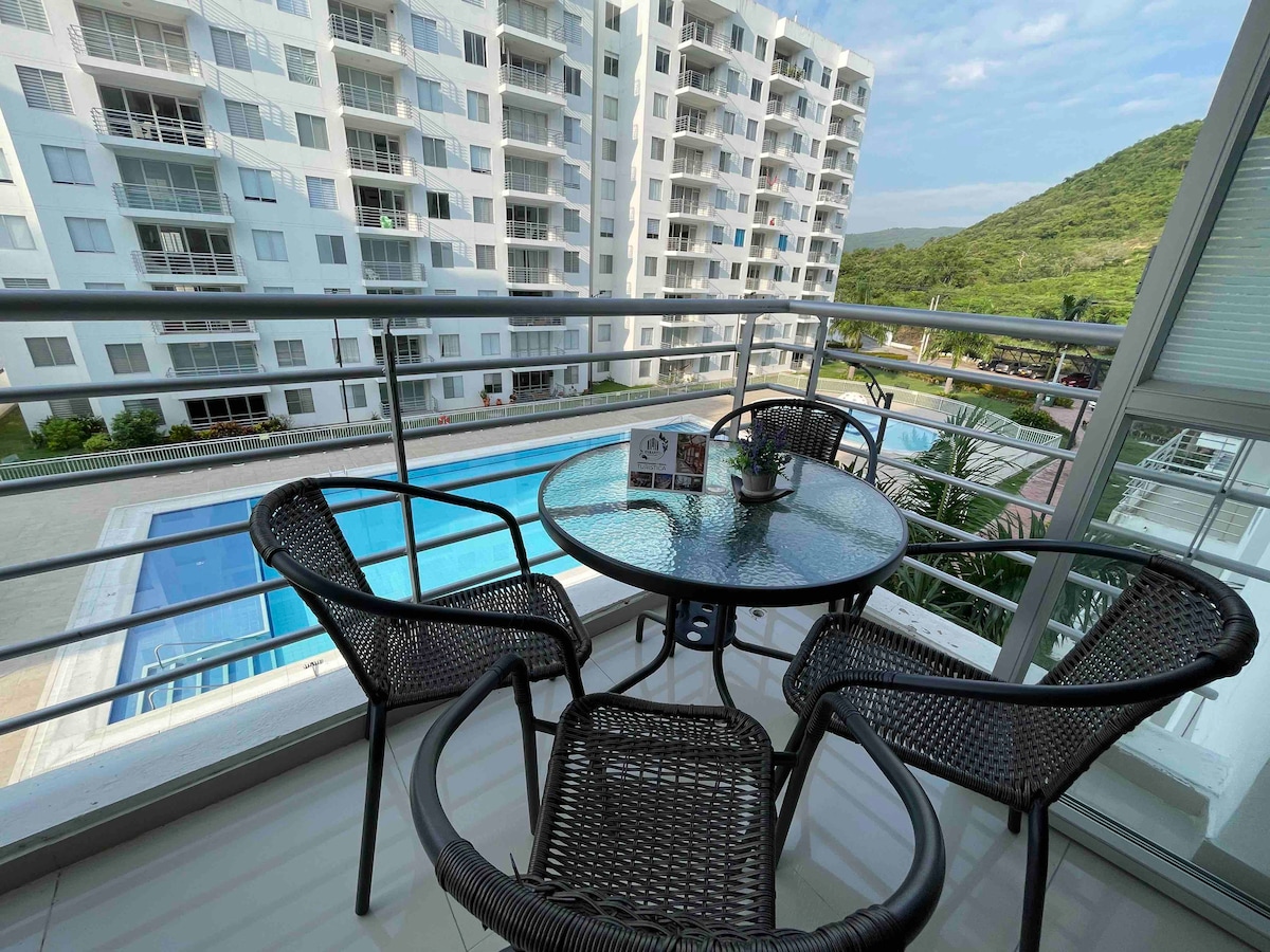 Magnifico apartamento con espectacular vista, completamente dotado. Dos habitaciones cada una con aire acondicionado. Wifi, Smart TV en sala y habitaciónes con las aplicaciones de Streaming (Ingresar con sus propias cuentas debido a las políticas de las plataformas), BBQ gas natural en balcón, hamaca. Conjunto con jacuzzi, piscinas, tenis de mesa, billar pool, futbolín, gimnasio. Complejo deportivo con canchas de tenis, futbol 5, cancha múltiple, parque infantil e iglesias