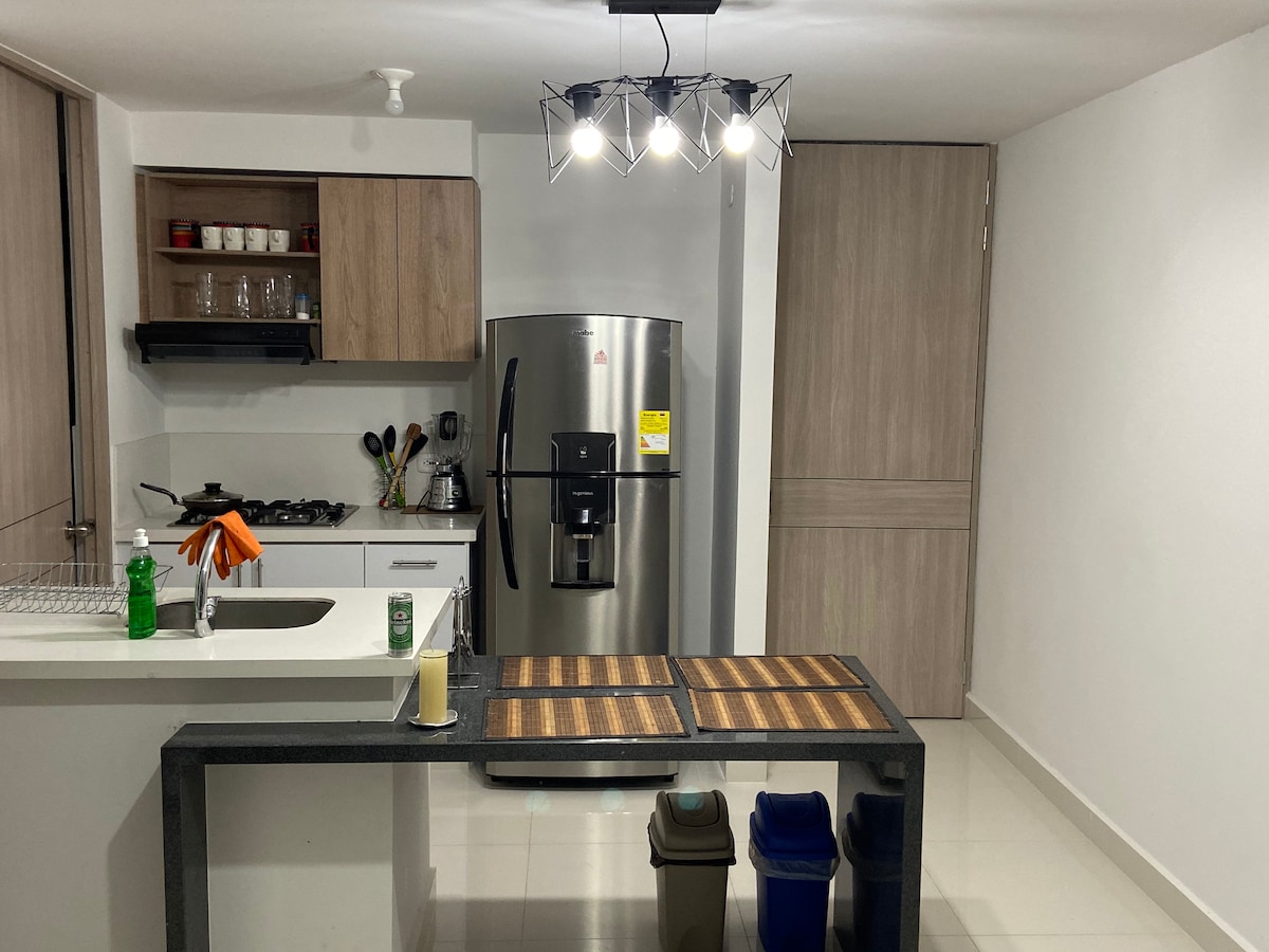 Apartamento familiar en Aqualina Green Completamente equipado con balcón y zonas sociales como piscina, parque infantil y parqueadero privado cubierto La cocina incluye todos sus utensilios, en la sala encontraras una barra de sonido y wifi. Horarios piscina,Llevar gorro para el ingreso Lunes: En mantenimiento Martes-Viernes: 2:00pm-8:00pm Sabados, domingos y festivos : 9:00am-1:00pm 2:00pm - 8:00pm Recuerda que debes de llevar tus implementos de aseo personal ya que no están incluidos.
