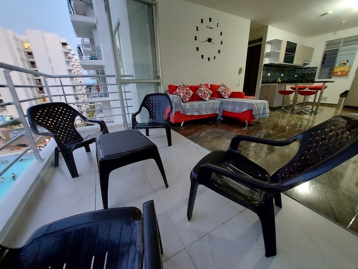 Moderno apartamento vacacional de lujo completamente amoblado con 3 habitaciones cada una con aire acondicionado y ventilador, ubicado en un piso 11 con vista a las piscinas y zonas comunes para disfrutar en pareja o en familia. Habitación 1 cama doble con auxiliar TV 43 " Disney+ Netflix barra de sonido - habitaciones 2 y 3 con dos camas sencillas, 2 baños - Sala Comedor con balcón TV Disney+ Netflix barra de sonido - Wifi y parlante bluetooth. Cocina, lavadora y parqueadero propio cubierto.