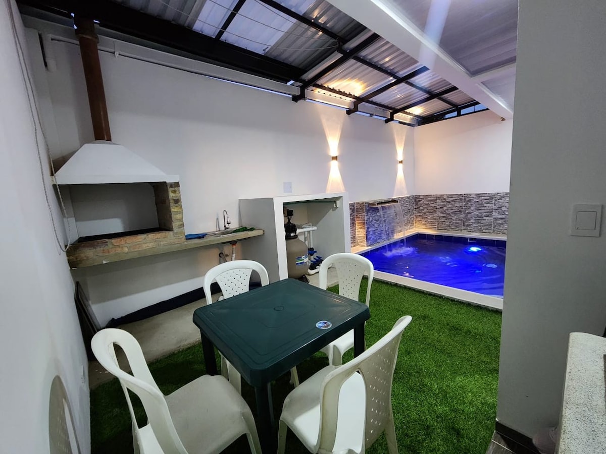 Relájate con toda la familia o amigos en este agradable lugar para quedarse. Casa de campo en conjunto residencial para 8 personas, dotada con piscina privada, aire acondicionado en toda la casa, internet, plataformas streaming de TV, cocina integral incluido elementos de cocina y vajilla, lavadora y zona BBQ con Bolirana.