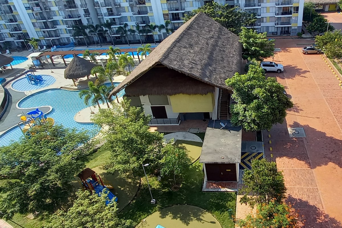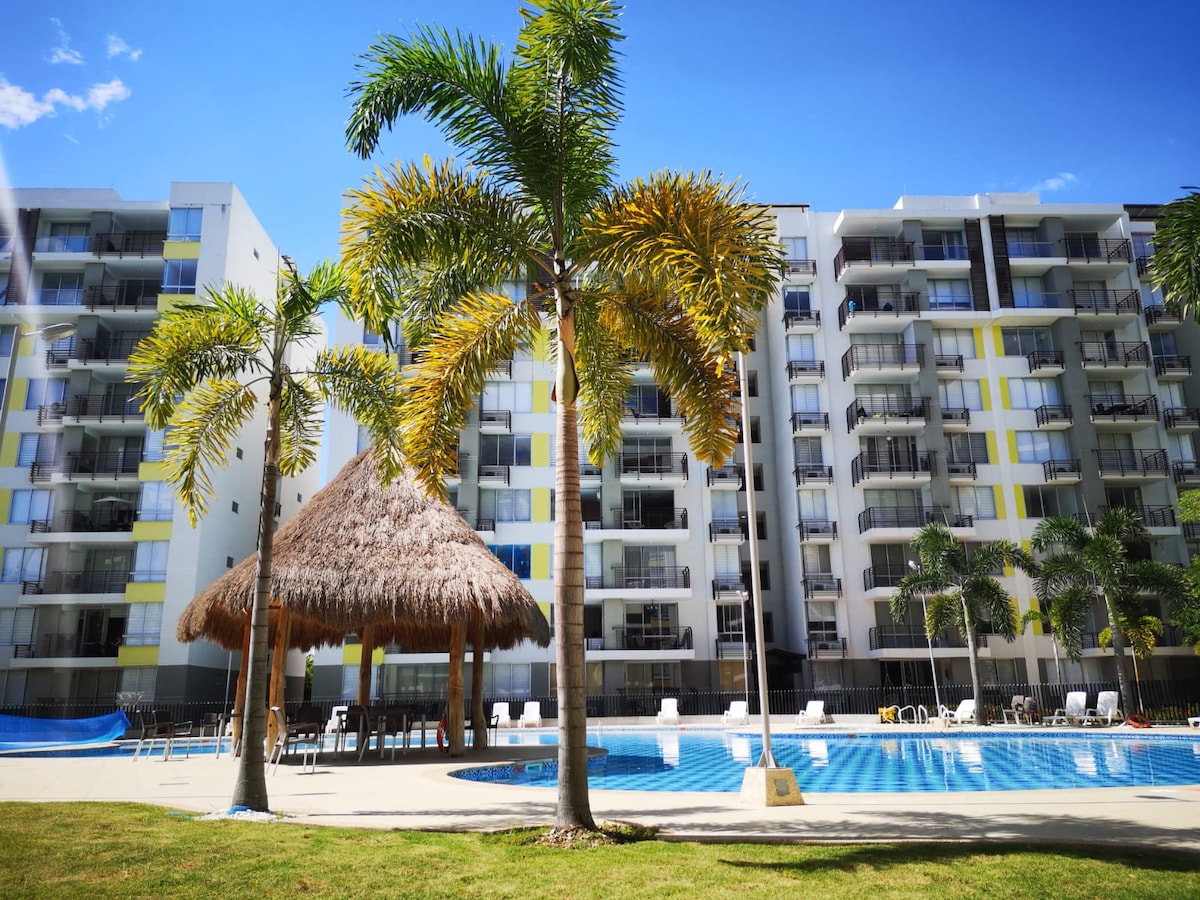 Vas y recárgate de la mejor energía, descansa y disfruta de un hermoso y acogedor apartamento, con una vista maravillosa y espacios adecuados especialmente para ti y tus acompañantes. Desconéctate y disfruta de sus piscinas y espacios de entretenimiento y deporte.