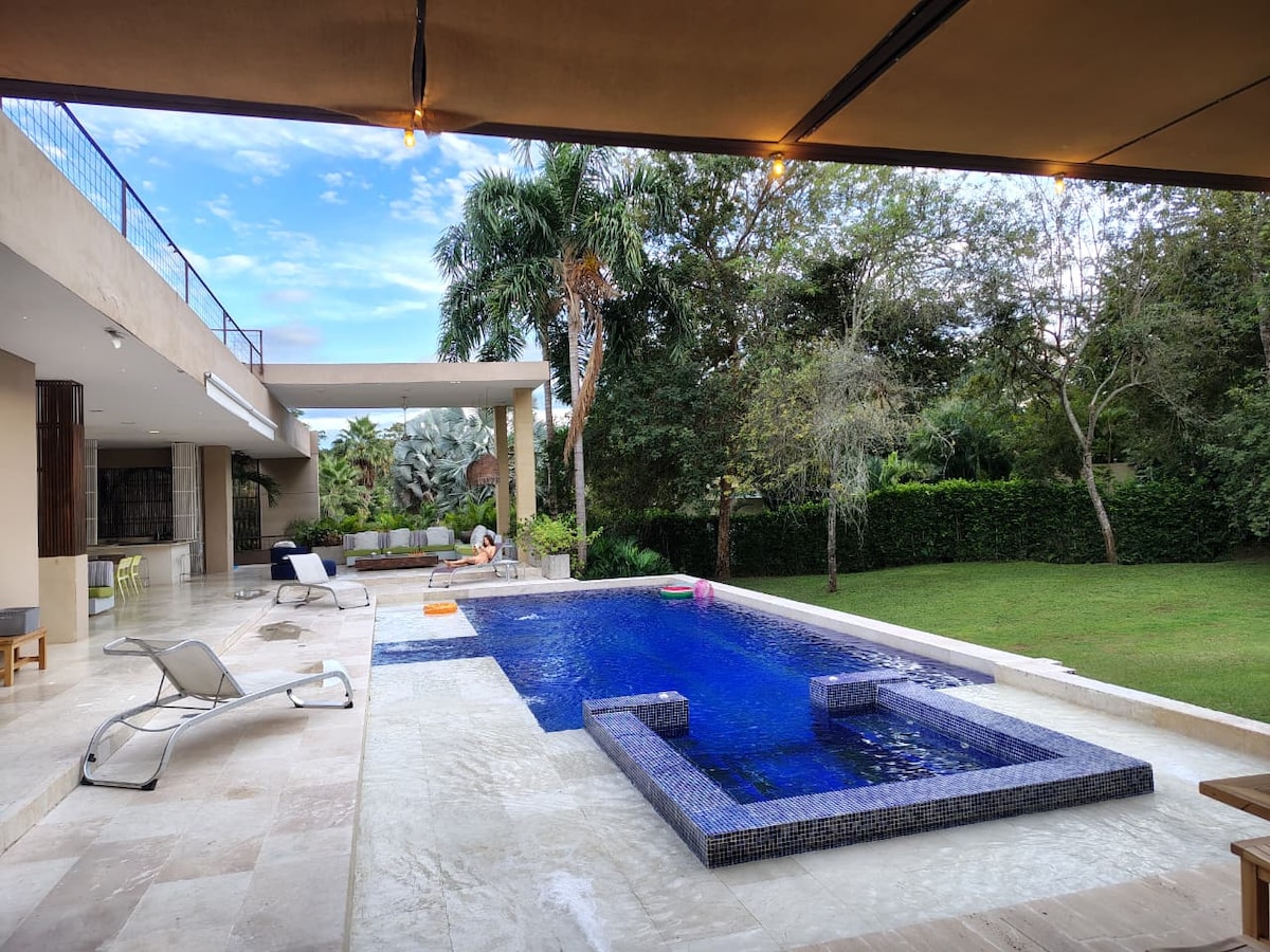 Un refugio tropical estilo Bali, pensado para familias que buscan descanso y bienestar. Disfruta sauna de madera, cold plunge, piscina privada y jardín para hacer grounding, disfrutar de un libro o una siesta en una hamaca bajo la sombra de un árbol. Ubicada en un club exclusivo con lago, restaurantes, canchas de golf y tenis. Espacios amplios, luz natural y diseño cálido para reconectar con lo esencial, descansar del ritmo urbano y disfrutar tiempo de calidad en un entorno tranquilo y natural.