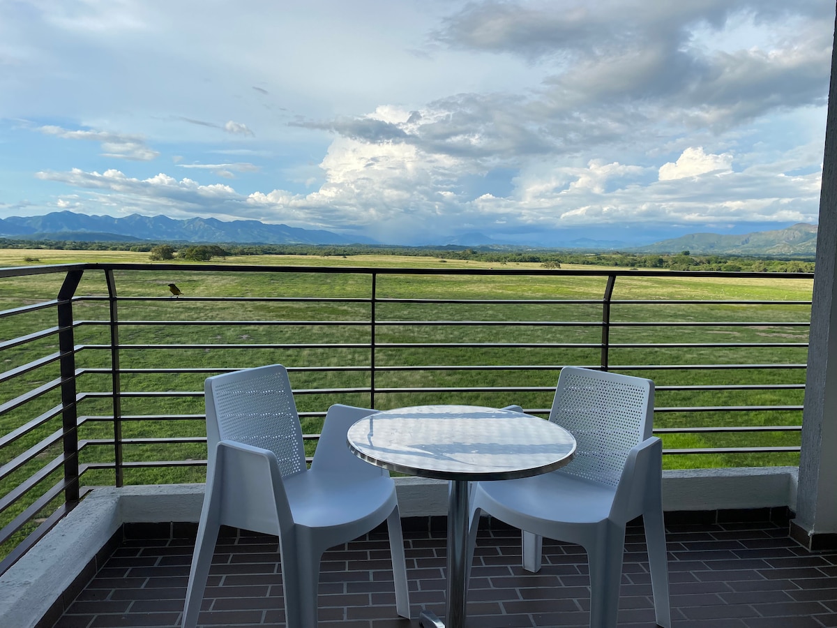 Hermoso apartamento con una vista inigualable y una terraza que te permite ver las lindas piscinas con que cuenta el condominio, podrás disfrutar mientras descansas de todos los espacios diseñados especialmente para nuestros huéspedes. Relájate en esta escapada única y tranquila en un bello lugar. Tendrás áreas acogedoras y cómodas con todo lo que necesitas para pasar unas vacaciones o días de descanso únicos con un clima excepcional. Contamos con una muy buena ubicación.