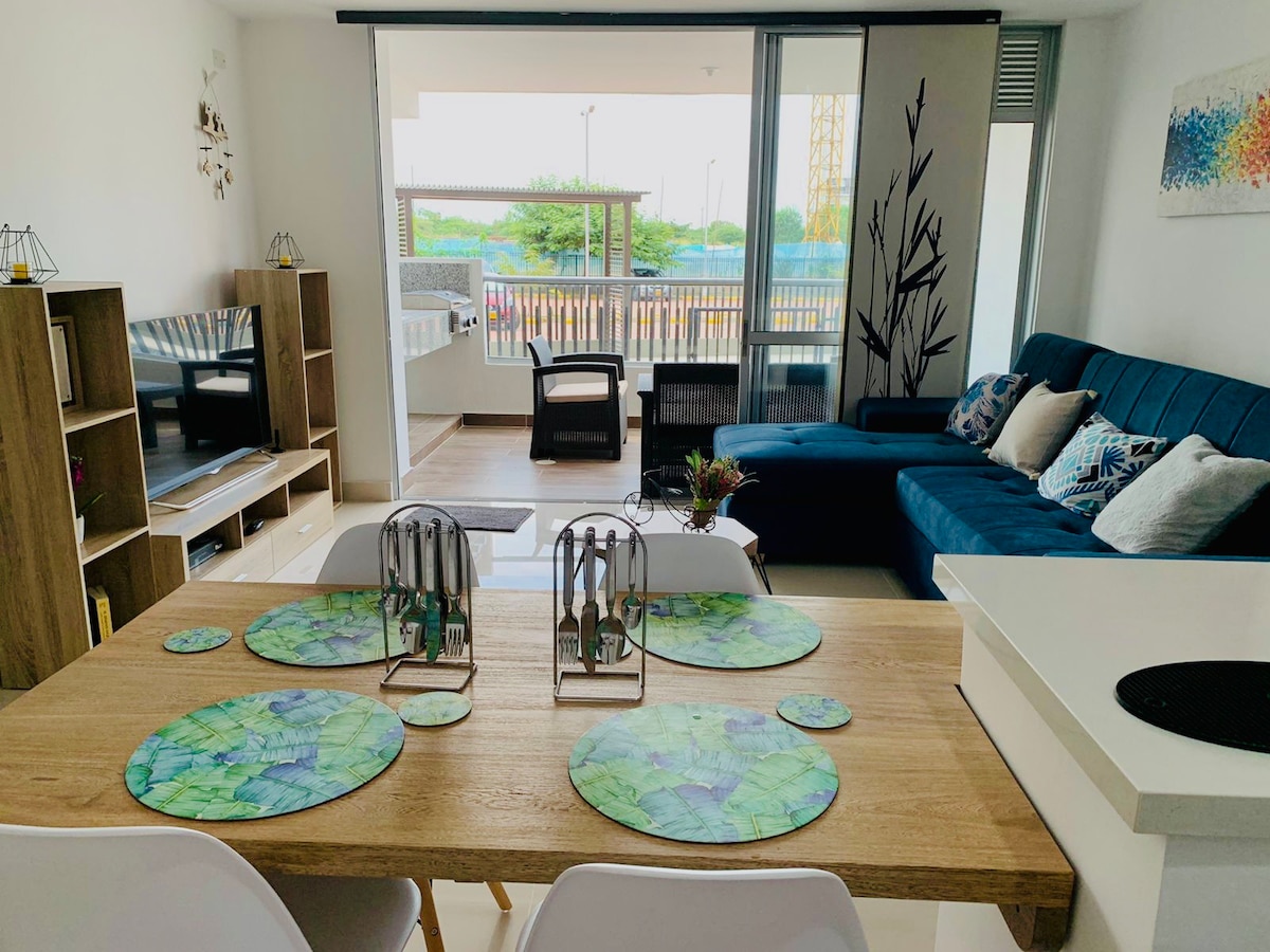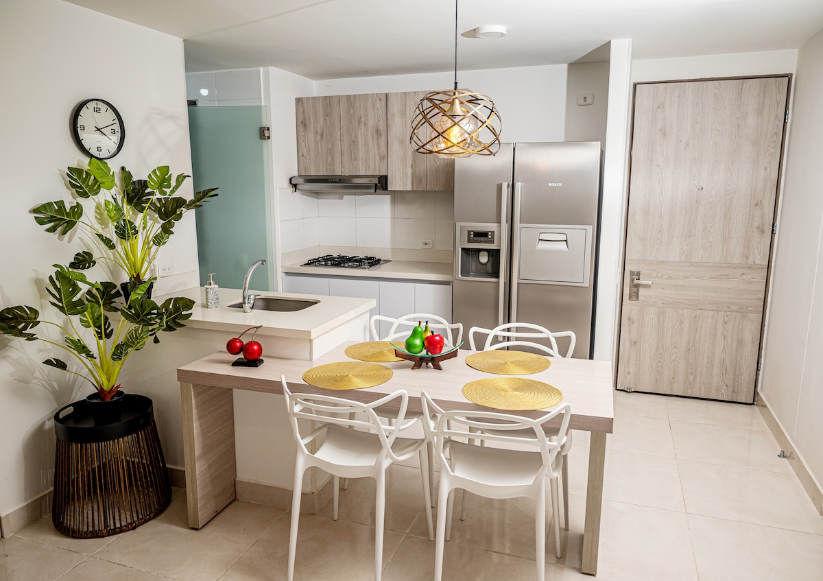 🌴🌞🌊 Somos @LaMoradaApto ✨ ⚠️ La tarifa NO incluye el cobro de manilla 🎟️ de identificación $ 11.300 x persona mayor de 5 años (Leer todo el anuncio🚨 ). Apto totalmente amoblado, cómodo, con BBQ privado 🍖 en terraza ideal para compartir momentos especiales con tus amigos o familiares. El Apto cuenta con Internet Ilimitado 🛜 de 50 MB/s (Máximo de la zona). Los días martes NO hay servicio de piscina por aseo, el horario es 8 AM a 8 PM, a medio día hay cierre por almuerzo del personal.
