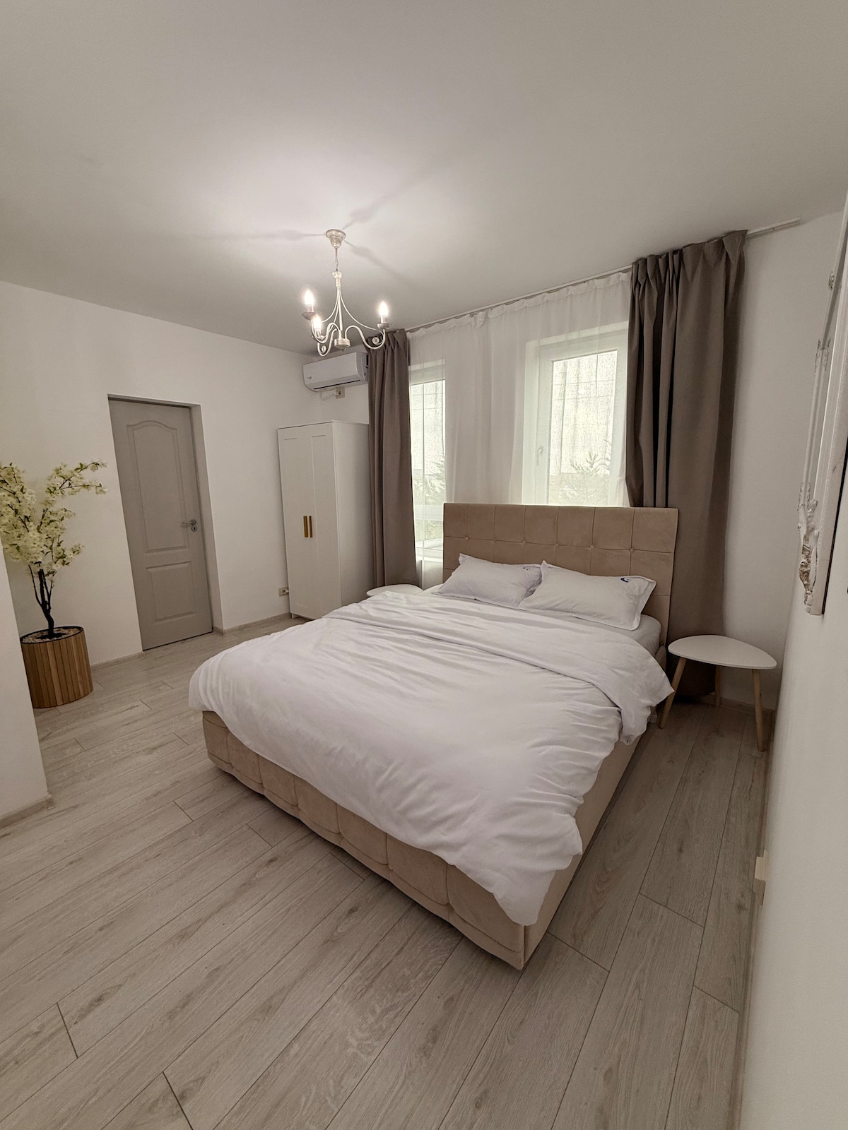Apartamentul este situat aproape de centru si iulius mall, facultatea de medicina ,o zona linistita de case . nou renovat ,parter , - Parcare gratuită pe stradă - pat dublu -clima -masina de spalat -fier de calcat haine -frigider - smart tv, cablu tv ,Netflix -internet -chicineta ,dotata ( vesela ,cafetiera , plita pe inductie.) -incalzire colterm (reteaua se stat). -baie cu dus se asigura lenjerie , hartie igienica ,sampon ,sapun. -sunt acceptate animale de companie