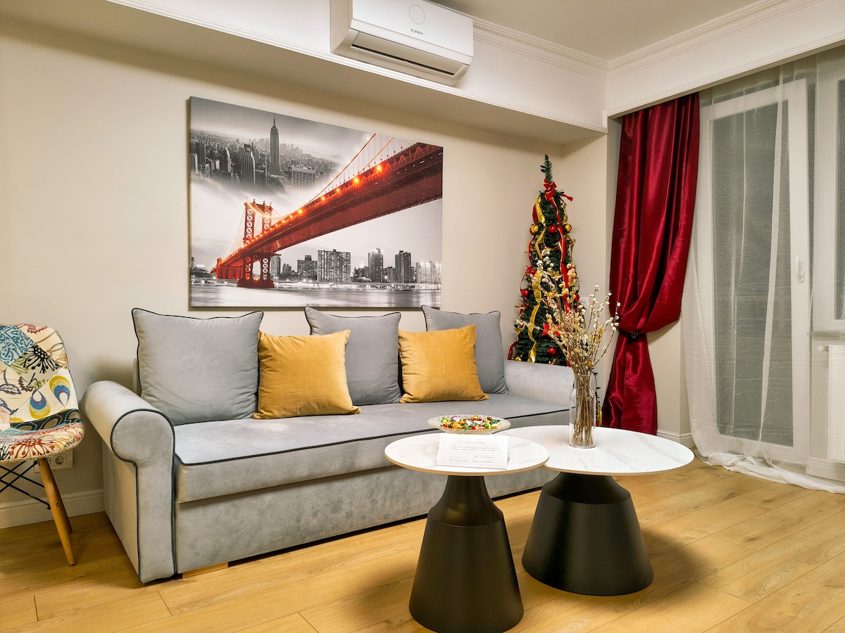 Welcome to your cozy getaway! Kick back and relax in this calm, stylish studio. My charming apartment features a comfortable 180x200 cm bed and is perfectly situated just 400 meters from the Iulius Town (5 minutes by foot) and 1km away from the historical and cultural city center. Iulius Town is the busiest place in the city. Here, you can find any restaurant you want, any café you like, and any store you want to shop in. It's really the place near you want to stay when you come to Timisoara
