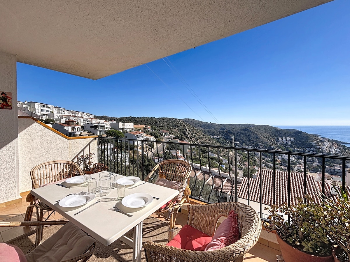 Superb apartment with breathtaking view of the Mediterranean Sea Canyelles Rosas<br>Come and discover this beautiful apartment for your summer holidays, offering a panoramic view of the Mediterranean Sea from a large terrace ideal for relaxing and enjoying the sun.<br>With an area of 78 m², the apartment can accommodate up to 6 people thanks to its 2 comfortable bedrooms and a sofa bed in the living room.