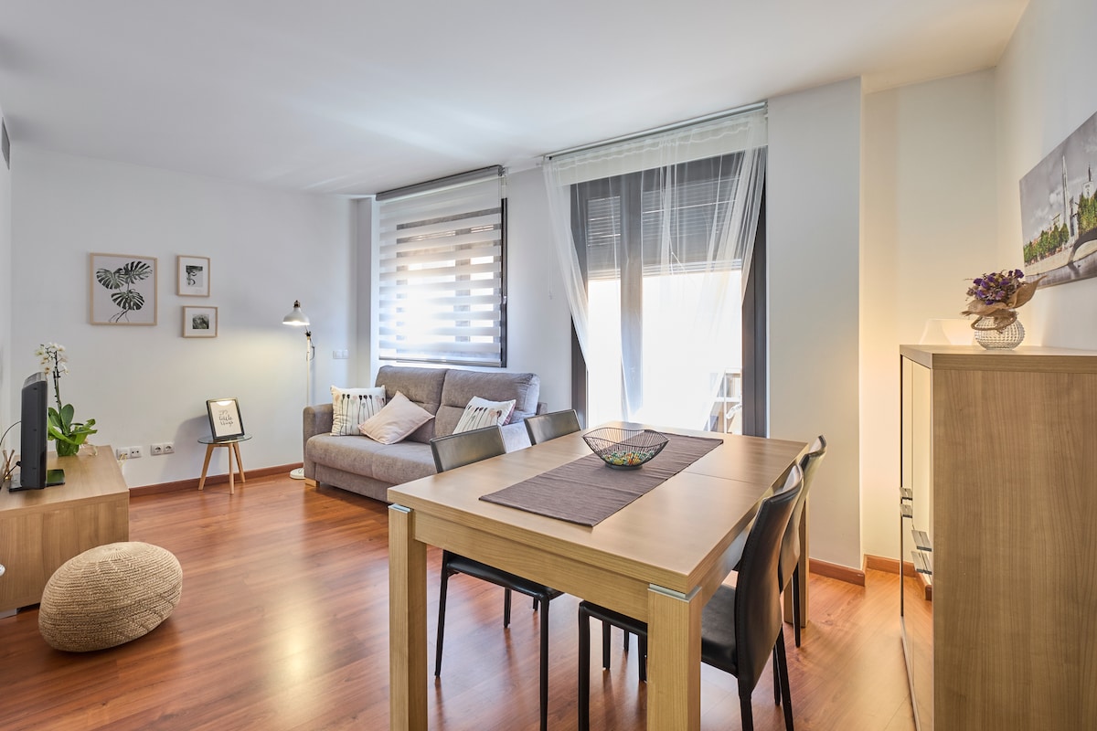 El apartamento esta muy bien situado ya que se encuentra en una zona muy tranquila y cercana al centro de la ciudad, a unos 15 minutos caminando. Asimismo el acceso y salida de la ciudad desde el apartamento es magnífico, así como la conexión con las principales vías rápidas para visitar el resto de la provincia. Justo enfrente del apartamento está la parada de bus de la Linea L1 (cada 10 minutos). En la zona hay supermercado y todo tipo de comercios y servicios. Parking privado incluido.