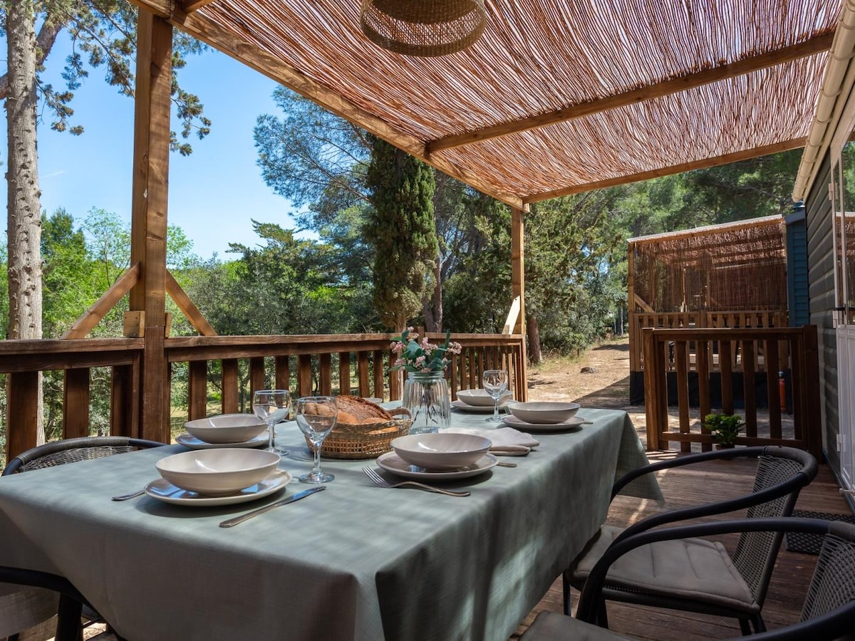 Mobile home haut de gamme agencé comme un appartement télévision 160 cm haute technologie Wifi gratuit -Non Fum CHIEN NON ACCEPTE Terrasse 20m2 MB 40M2 jardin 100m2 Suite PRT 1 grand lit , 1 toilette lavabo, 1 climatisation , 1 dressing, 1 coiffeuse, 1 téléviseur - non fournis draps-serviettes Cuisine équipée Salon panoramique clim réversible, 1 salle de bain avec douche, 2 wc. Extérieur avec terrasse couverte 20m2 canapé, hamac, parasol ,table. hamac, fauteuils, plancha à gaz -