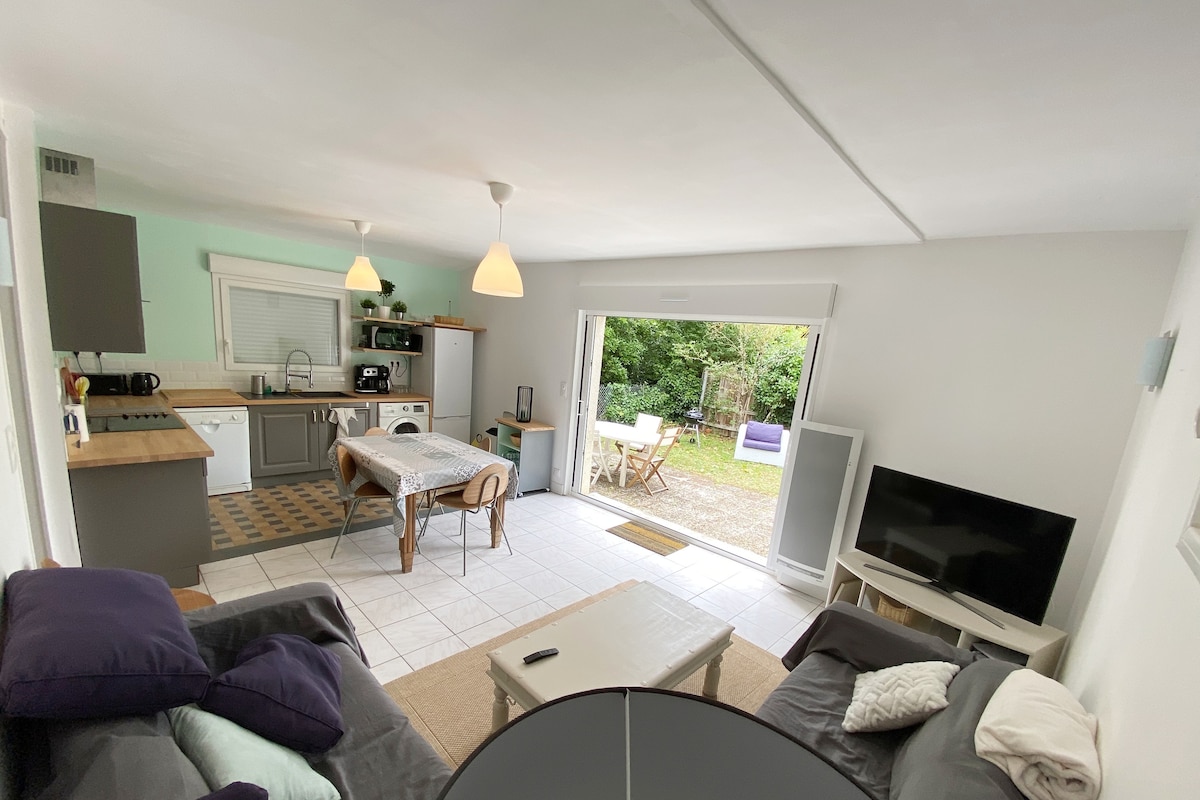 Maison de Vacances à Montalivet. (English speaking Host) Maison neuve pour 6 personnes située au calme à 1,2km de l'océan (environ 12 min à pieds). Entièrement équipée et aménagée, vous vous y sentirez comme chez vous! Composée de 3 chambres dont une suite parentale, 2 salles d'eau au total, 2 WC, une terrasse couverte avec barbecue/plancha/salon de jardin et table extérieure. Cuisine entièrement équipée (lave-vaisselle-four-induction-micro-ondes-lave linge- machine à café -grille pain etc)