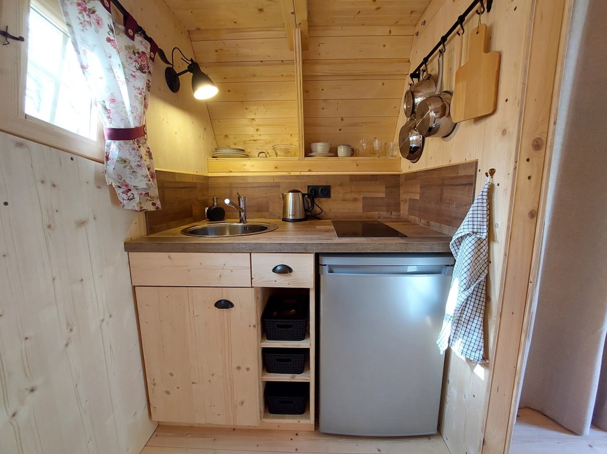 "La Cabane" is made up of panels of Douglas fir and fully sliding Plexiglas, adapting to your desires. Its patio will allow you to enjoy the view of the garden and the surrounding countryside. The small kitchen and the annex will give you full autonomy for your meals. The hundred percent sliding walls live to the rhythm of the weather and the wood; an atypical experience, in the heart of the Charente countryside!