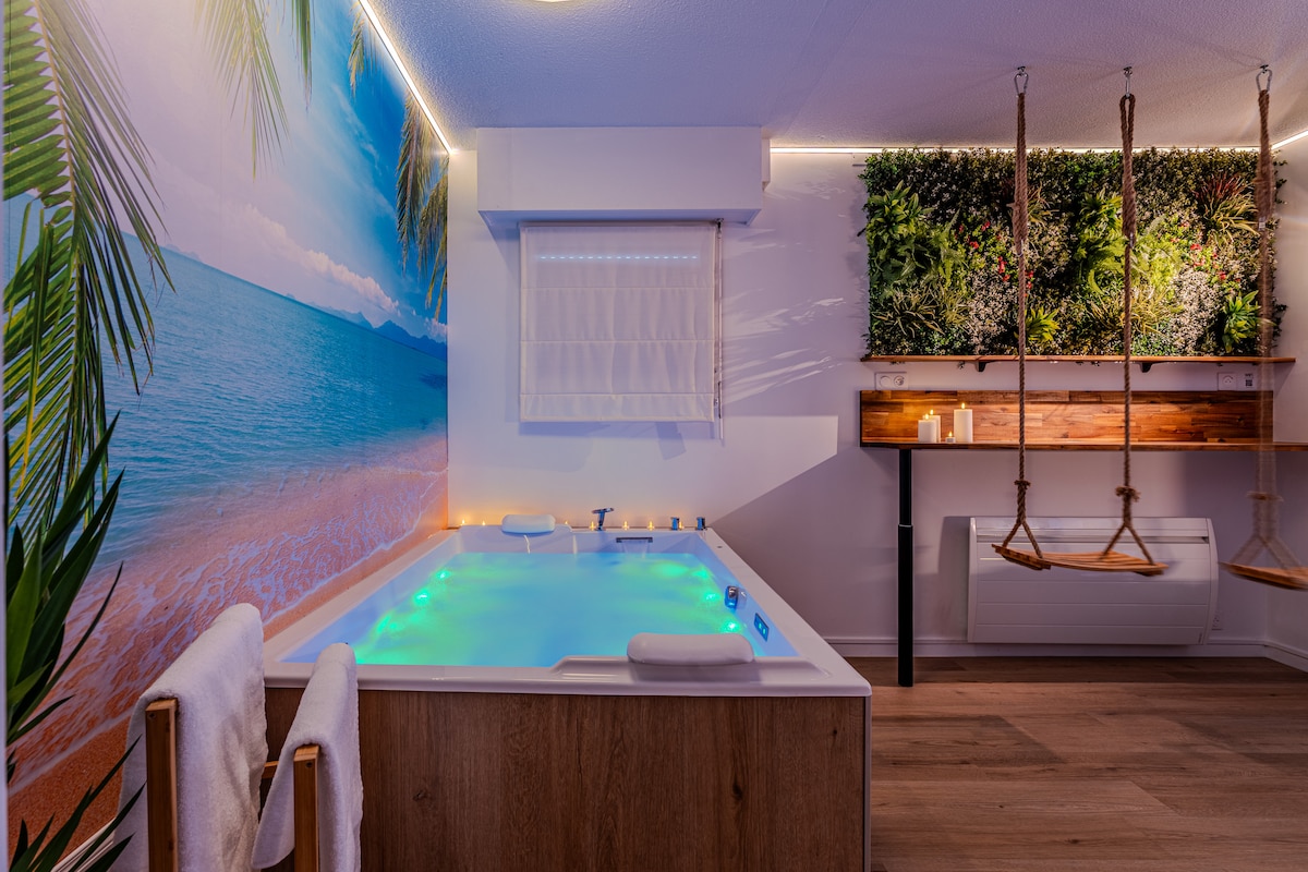 异国情调水疗套房,超大面积,配备电影放映机,适合情侣入住
