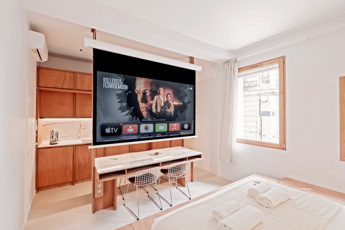 Bienvenue dans ce studio lumineux à l’agencement unique, en plein cœur de Bordeaux ! Parking gratuit (indispensable à Bordeaux) Emplacement exceptionnel : commerces, restaurants, transports et sites touristiques au pied de l’immeuble. Arrivée autonome 24h/24, Wi-Fi rapide, tout est pensé pour votre confort. Cuisine équipée, lit queen size, vidéoprojecteur… vous ne manquerez de rien. Ligne et draps fournis. Que vous soyez en amoureux, en famille ou en déplacement pro : welcome onboard
