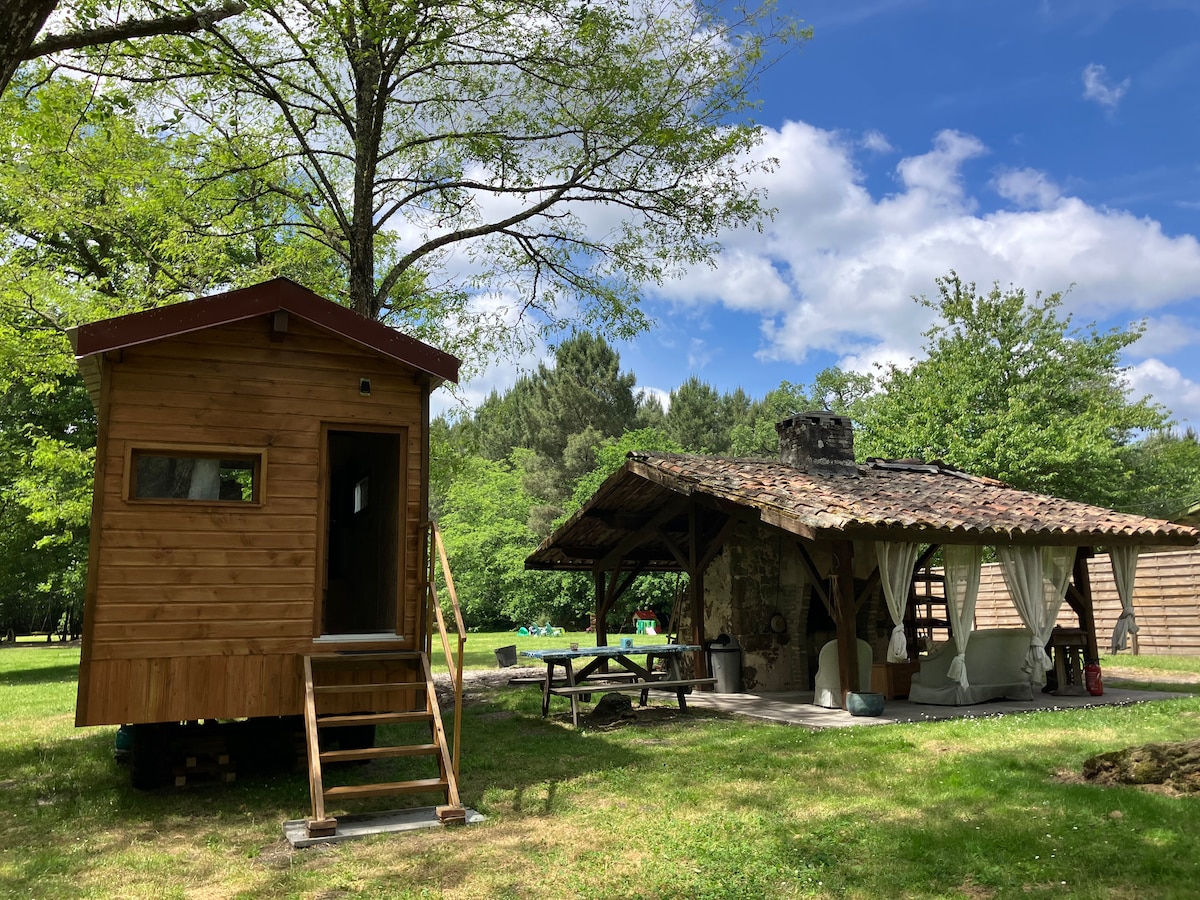 Logement atypique et dans un cadre naturel unique et reposant...laissez vous surprendre par le chant des oiseaux et autres animaux, par les paysages de la forêt landaise qui changent au gré du temps....laissez vous surprendre par le temps qui passe en faisant une pause dans un hamac, en prenant l'apéritif autour d'une partie de pétanque avec de la musique en fond...et à 5 min en voiture du centre et d'un grand lac. Possible à la nuitée sur demande préalable Caravane équipée d'un grand auvent