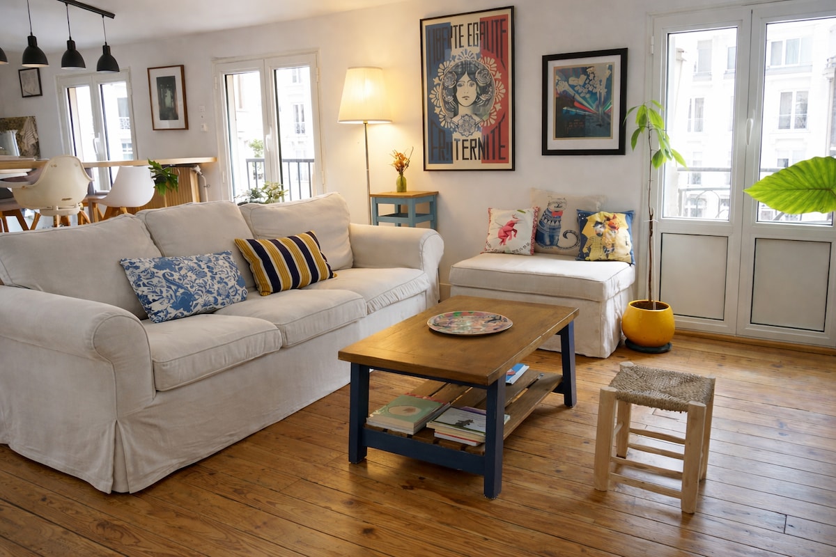 Our home is in an exceptional location right on Place des Chartrons, famous for its authentic village life in the heart of the city. The whole house will be yours to enjoy! Wake up in the morning with the natural light coming true the windows ! Fully renovated in 2014, our duplex home is tastefully decorated with a mix of antiques and flea market finds, giving it a chic but relaxed and welcoming atmosphere. It features Bordeaux's typical stone walls, wooden floors, a fireplace and high ceilings. It has 3 spacious bedrooms, 2 bathrooms, 2 toilets, a living room with dining area, and a separate kitchen. One bedroom has a single bed and a double bed (140 cm x 200 cm) on the mezzanine. The other two bedrooms each have a large double bed (160 cm x 200 cm). One bedroom has an ensuite bathroom. The whole house will be yours to enjoy! I will be very happy to communicate with you by email and telephone. And as a Bordelaise myself I can provide you with all the addresses and useful information you need to make your holiday an enjoyable and memorable experience. This house is in Les Chartrons, which used to be the wine merchants' and sailors’ district back in the 18th century. It’s since been transformed into a chic neighborhood, known for its antiques shops and fashion boutiques. If you arrive by car, you can park on the street outside or in a private parking (Parking de la Cité Mondiale) located 4 minutes by feet from the house. The nearest Tram stop is only 2 minutes away: "Place Paul Doumer" Tram C, and "CAPC" Tram A. A direct tram will take you from the train station to the house: take tram C, direction "Les Aubiers" and stop "Place Paul Doumer". A direct tram will take you from the house to the Parc des Expositions . You can rent bicycles at the Vcub station or a car at the Bluecub station. Both stations are very close to your house. The basement has a separate entrance and contains space for bicycles or a moped should you decide to rent one. Please note that during Christmas and New Year’s Eve, the minimum stay is 5 days.
