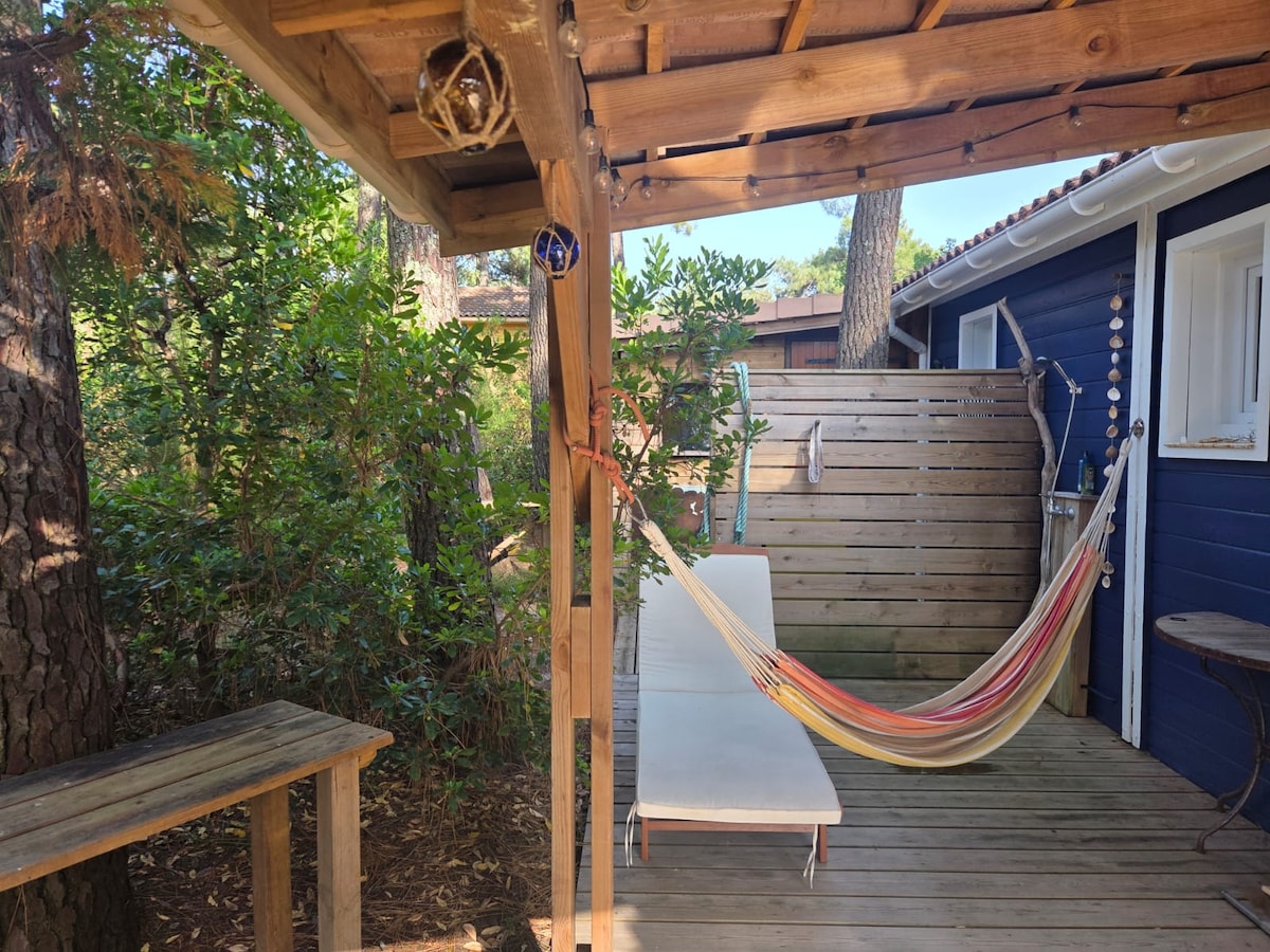 Le chalet est situé à Biganos au carrefour du bassin d'arcachon (Cap ferret, Bordeaux et Arcachon). Détendez-vous dans ce logement calme et élégant. Il se compose d'une pièce principale avec un lit en 160, une petite cuisine équipée (lave vaisselle, expresso, grille pain bouilloire, four micro ondes grill, réfrigérateur et plaque induction. La salle d'eau avec douche à l'italienne. Une mezzanine avec lit de 140cm. A l'extérieur, un jacuzzi pour 4 personnes et une terrasse avec bain de soleil.