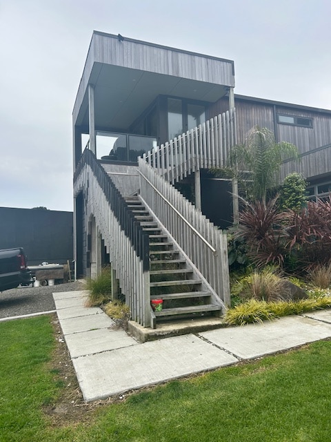 Modern 7yr old one bedroom guest house. Separate lounge and kitchen, bathroom with shower and toilet. Attached to main family house but separated by two garages giving privacy. The space is suitable for couple wanting a quiet getaway with separate entrance to the family home. 1 min walk to 1 of nz’s best surf beaches and short drive to others beautiful beaches/surf breaks and Gisborne Town .