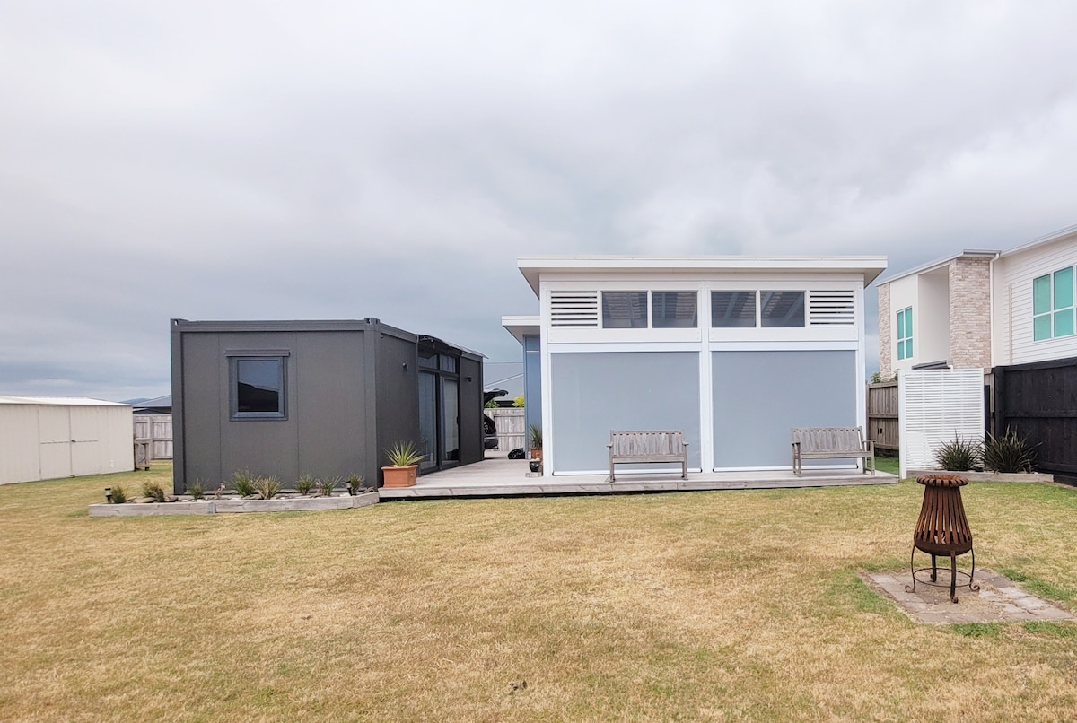 Blue Dayz is a modern day bach with a large covered deck that connects the main living space to the bedrooms. The property is fully fenced with plenty of flat lawn space to fit your car, boat and play your favourite lawn game. The bach is suited for all seasons, with 2x large outdoor heaters and a fully insulated living space that will keep you toasty warm on those cooler day/ nights. Pets welcome.